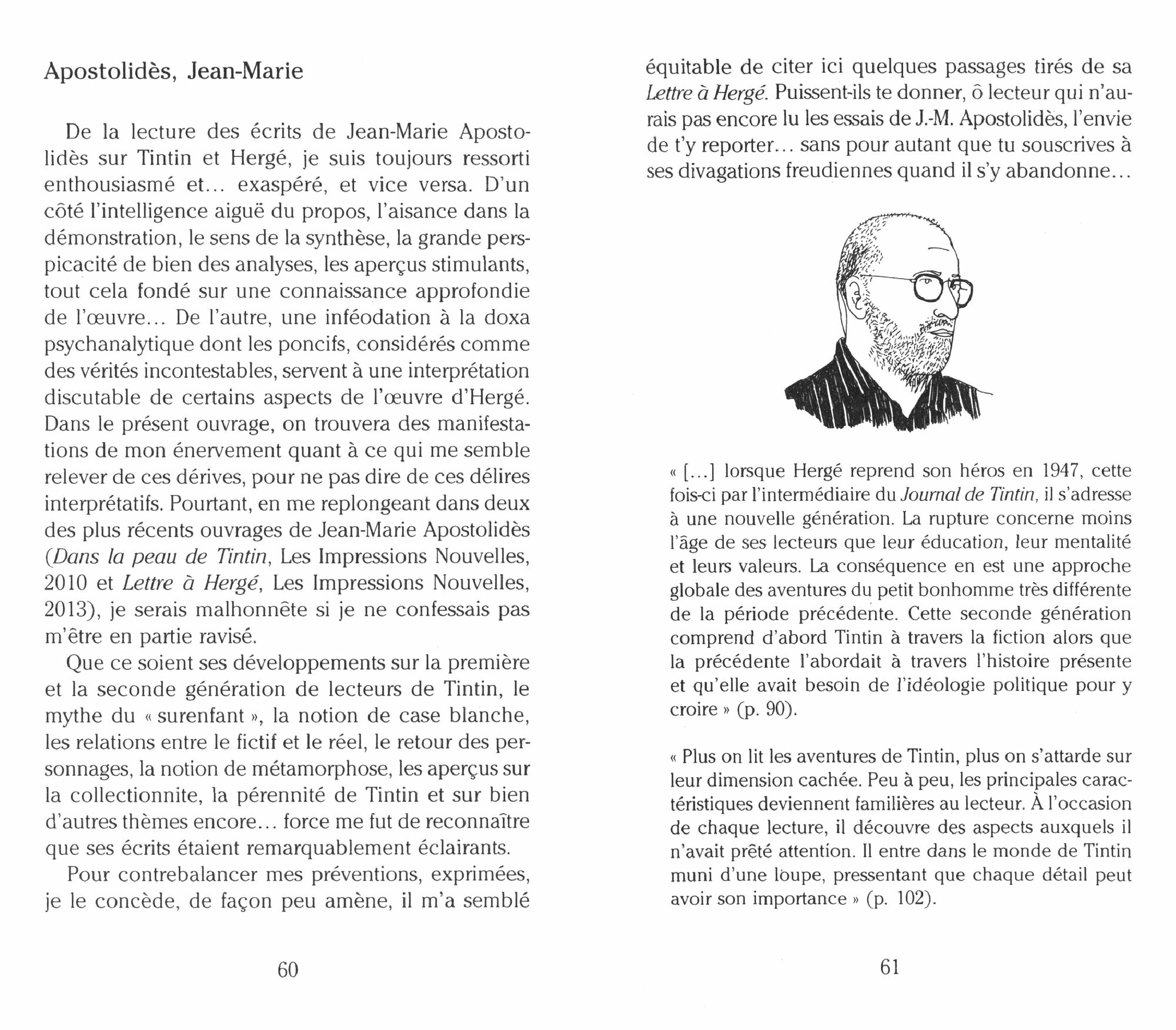 Puisse cet ouvrage, alliant erudition et fantaisie, souvenirs personnels et references a l’imaginaire collectif, interesser ceux qui ne connaissent pas bien Tintin comme ceux qui l’apprecient. Quant aux tintinophiles, que ce dictionnaire – o vanite – les surprenne en leur montrant des facettes insoupconnees de l’?uvre d’un des plus grands artistes du XXe siecle. »