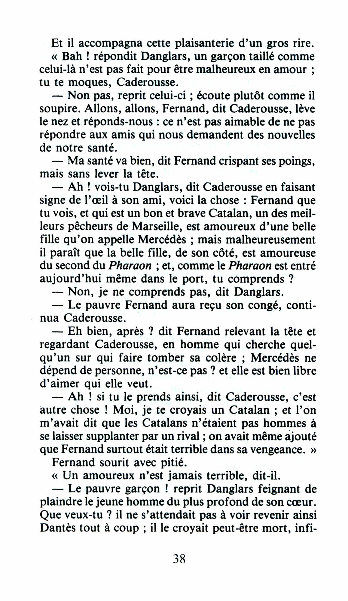 Monte-Cristo est un surhomme, un grand seigneur fastueux dont Dumas disait modestement que Dieu ne pouvait rien lui refuser. Comte d'emprunt, il est d'abord Edmond Dantes, l'ancien marin jete dix ans durant au fond du chateau d'If par des ennemis dont il ignore tout. La rencontre de hasard avec l'abbe Faria, prelat italien detenteur d'un fabuleux tresor, lui donne les moyens de sa vengeance...