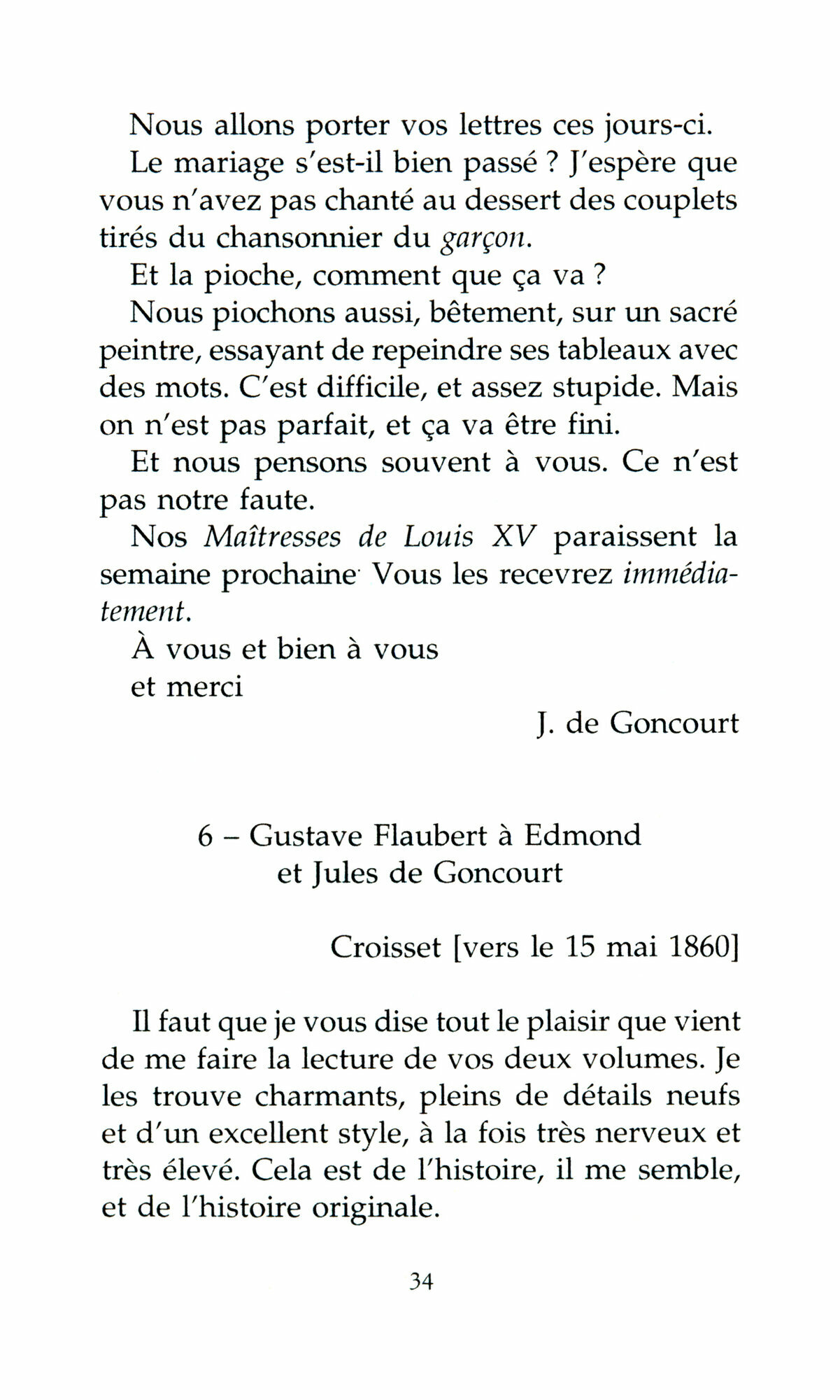 Et de fait, celle qu'ils echangerent avec leur ami, maitre et rival Flaubert au long d'une relation de vingt ans (1860-1880), se revele, en echo et en opposition parfois a leur celebre Journal, extremement precieuse pour comprendre, certes, les " creatures " contradictoires, changeantes et vulnerables, mais surtout les grands artistes qu'ils furent tous trois, artistes qui consideraient la litterature comme un veritable sacerdoce et se percevaient comme les derniers representants d'un art " pur ", sacre, a l'abri du mercantilisme et de la " blague " moderne : " La pure litterature, le livre qu'un artiste fait pour se satisfaire, me semble un genre bien pres de mourir. Je ne vois plus de veritables hommes de lettres, de sinceres et honnetes ecrivains que Flaubert et nous " (Journal, 9 aout 1868).