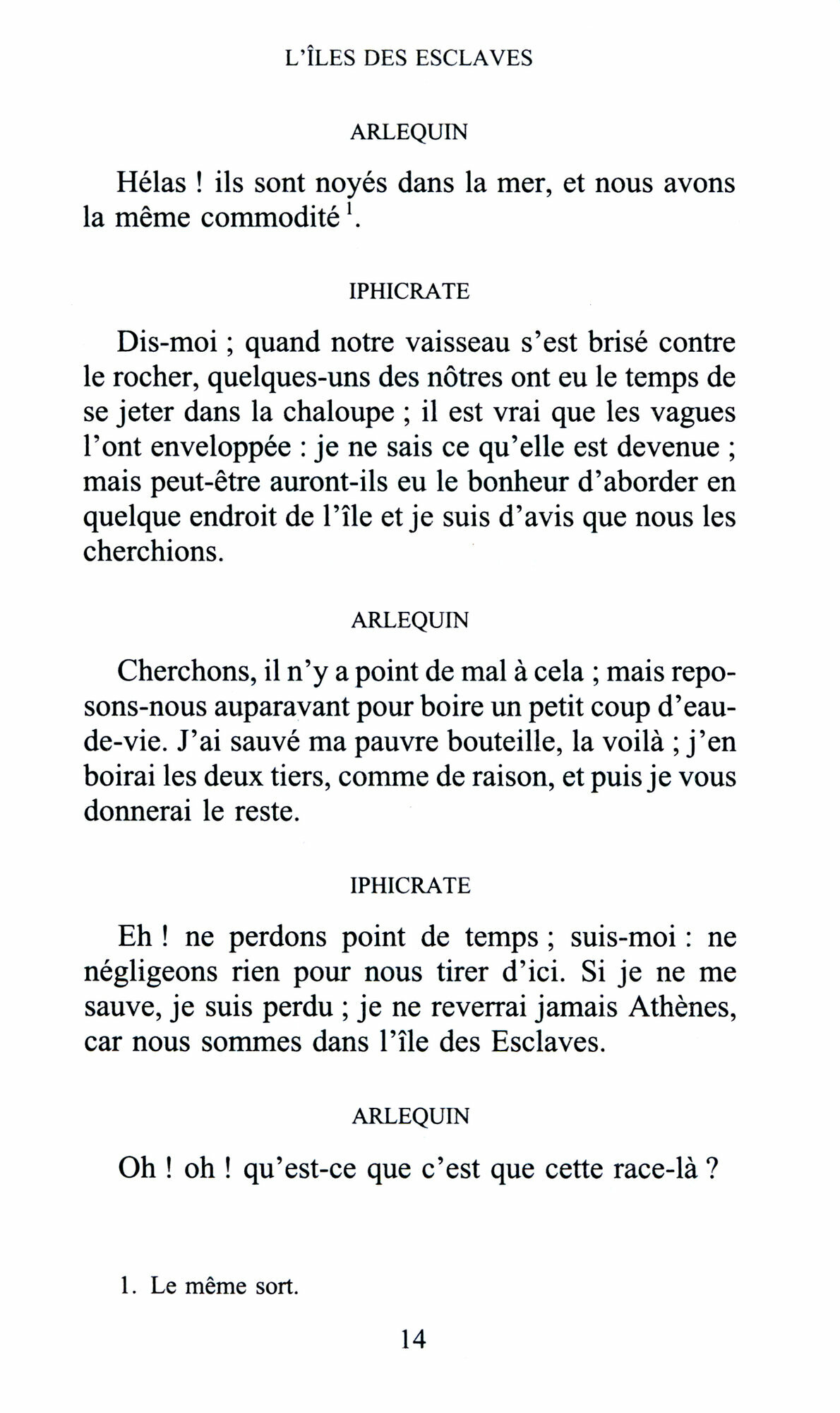 Jetes sur un rivage grec a la suite d'un naufrage, deux couples, maitres et serviteurs, ont tout a craindre de cette « Ile des esclaves » ou survit une tradition seculaire. Dans cette etrange republique, on leur ordonne d'echanger leurs noms, leurs vetements et leur condition. Les valets ont trois ans pour transformer leurs patrons, et faire de ces orgueilleux injustes et brutaux des etres humains raisonnables et genereux.