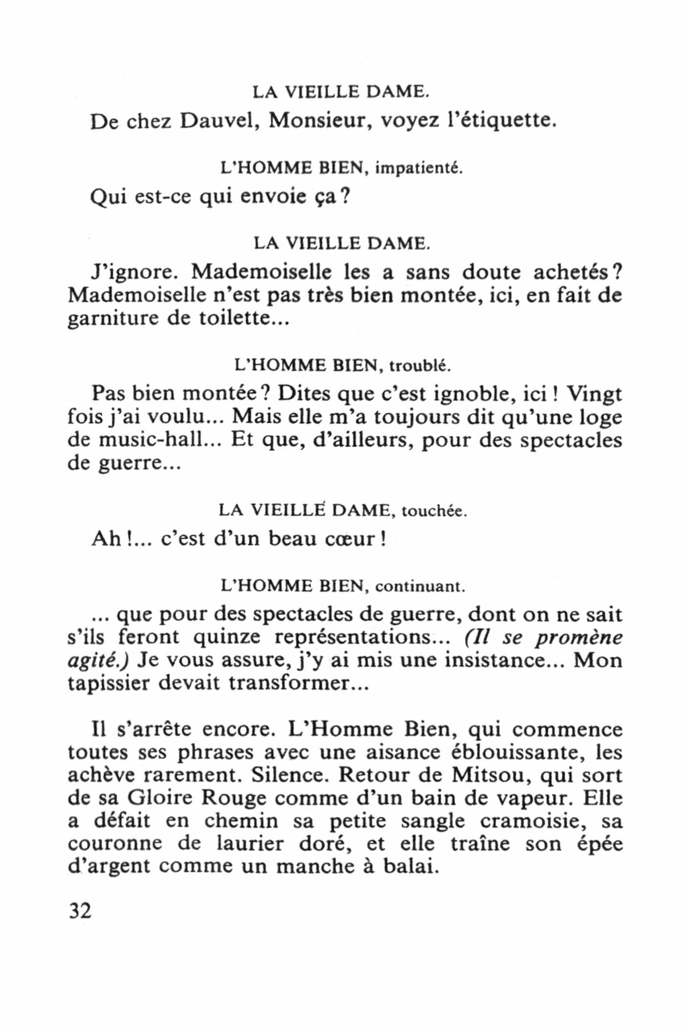 Un mois de mai de la guerre. Mitsou, petite danseuse de l’Empyree-Montmartre, s’apprete a entrer en scene quand surgit dans sa loge son amie Petite-Chose, accompagnee de deux jeunes sous-lieutenants, un kaki et un bleu horizon. Mitsou se montre froide et reservee. Mais elle est bien jolie et le Lieutenant Bleu, avant de retourner au front, lui adresse une lettre. Une correspondance s’etablit. Malgre les fautes d’orthographe, des tournures quelque peu populaires, les lettres de Mitsou enchantent le jeune homme ; elle s’y revele d’une grande purete de c?ur. Chacune des lettres les rapproche et ils finissent par oublier tout ce qui les separe, jusqu’au jour ou le Lieutenant Bleu arrive en permission…