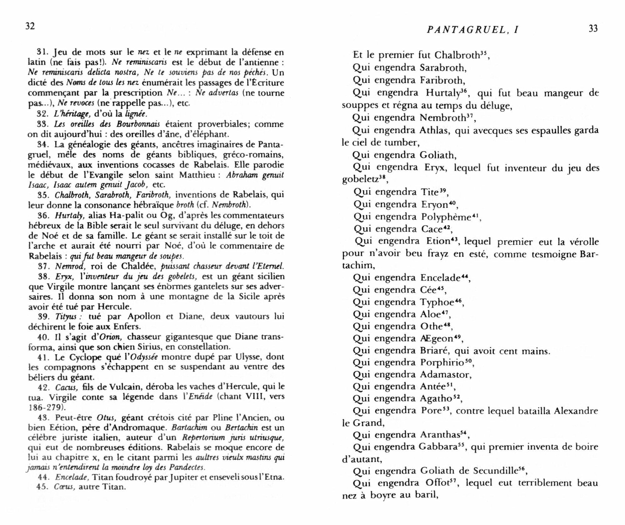 « Rire est le propre de l'homme », disait Rabelais et, pour nous faire rire, il invente Pantagruel, le fils de Gargantua. Gargantua etait le heros d'un livret de colporteur publie avec succes a Lyon : Les Grandes et Inestimables Chroniques de l'enorme geant Gargantua. Pantagruel est, lui aussi, un geant, qui, par megarde, comble une carie dentaire en avalant des soldats ! Il a pour ami Panurge, un fieffe voleur vivant de la vente des indulgences et du mariage des vieilles femmes.