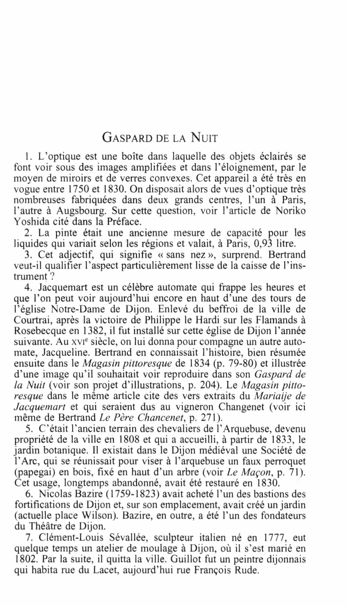 En 1842, un an apres la mort de son discret auteur, la premiere edition de Gaspard de la Nuit ne rencontre guere que le silence : vingt exemplaires a peine en sont vendus. Et il est vrai que les premiers lecteurs etaient sans doute mal prepares a la decouverte de ce recueil de courtes « fantaisies a la maniere de Rembrandt et de Callot » qui offraient a la fois l'apparence de la prose et la realite d'une pure ecriture poetique.