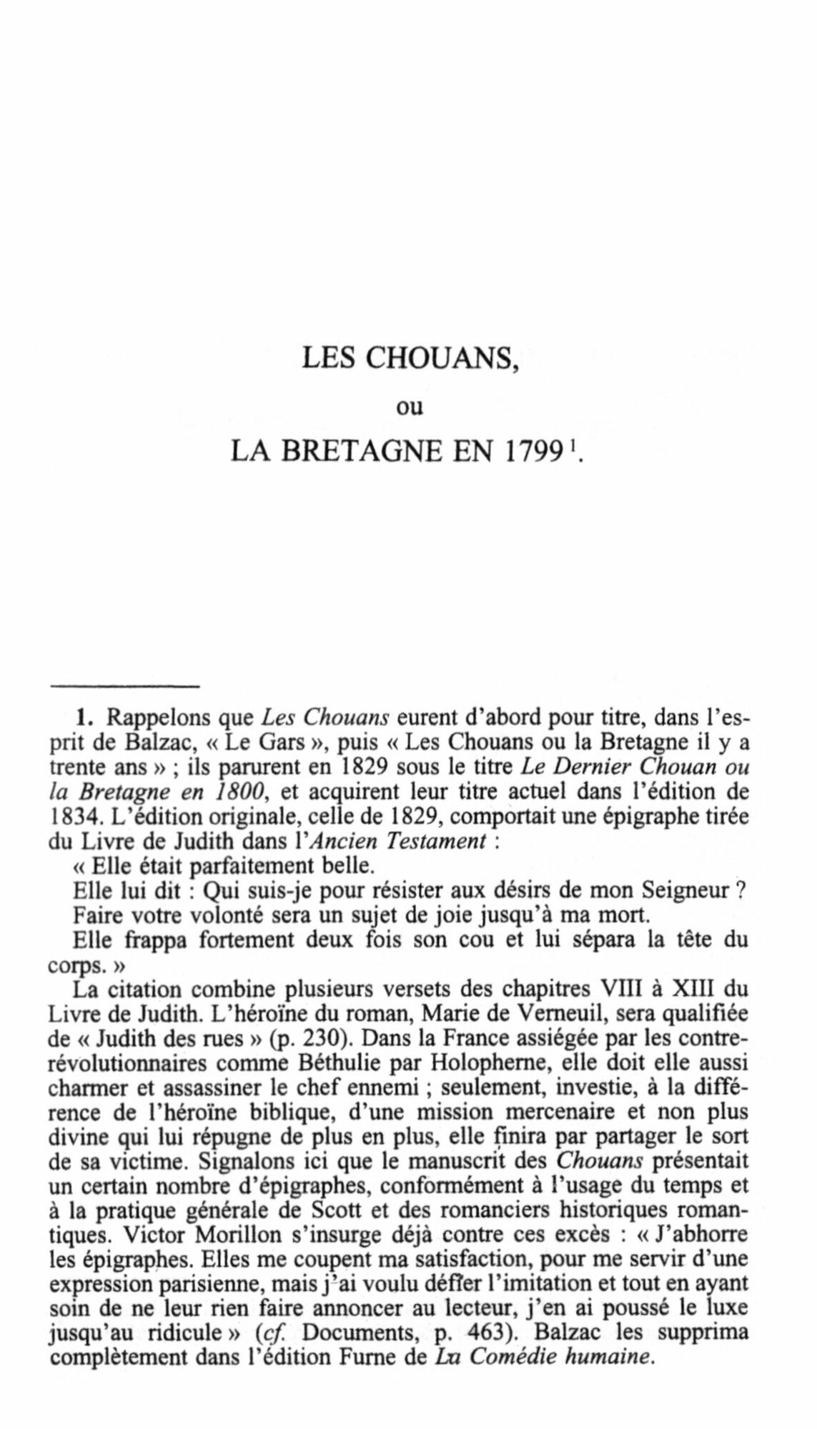 Drame historique, recit d'aventures, tragedie d'amour, Les Chouans, ou la Bretagne en 1799 forment le prologue de La Comedie humaine. Nous sommes a la veille du 18 Brumaire. Bientot va sortir des limbes cette societe nouvelle que Balzac a pour ambition de peindre. Mais, aux confins de la Bretagne et de la Normandie, c'est encore l'affrontement sans merci des " manants du roi " et des soldats de la Republique. Sous la conduite d'un chef intrepide et juvenile, le marquis de Montauran, les Chouans pillent, ranconnent et terrorisent les patriotes.