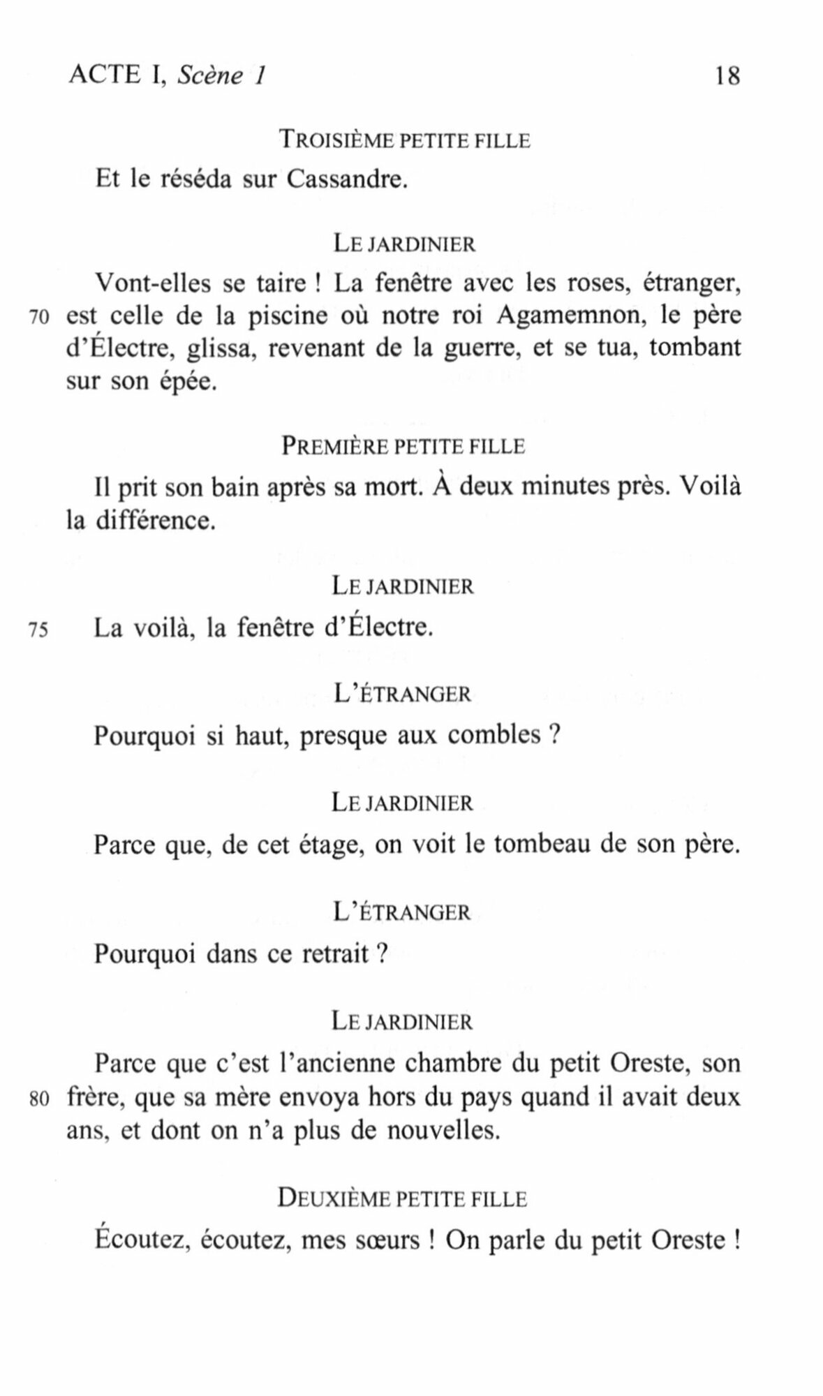 Sur ce grand mythe de l’Antiquite, Jean Giraudoux a ecrit sans doute sa meilleure piece. Electre possede une grande force tragique sans jamais perdre cet esprit etincelant, cet humour qui ont fait de Jean Giraudoux l’un des plus grands ecrivains du xxe siecle.