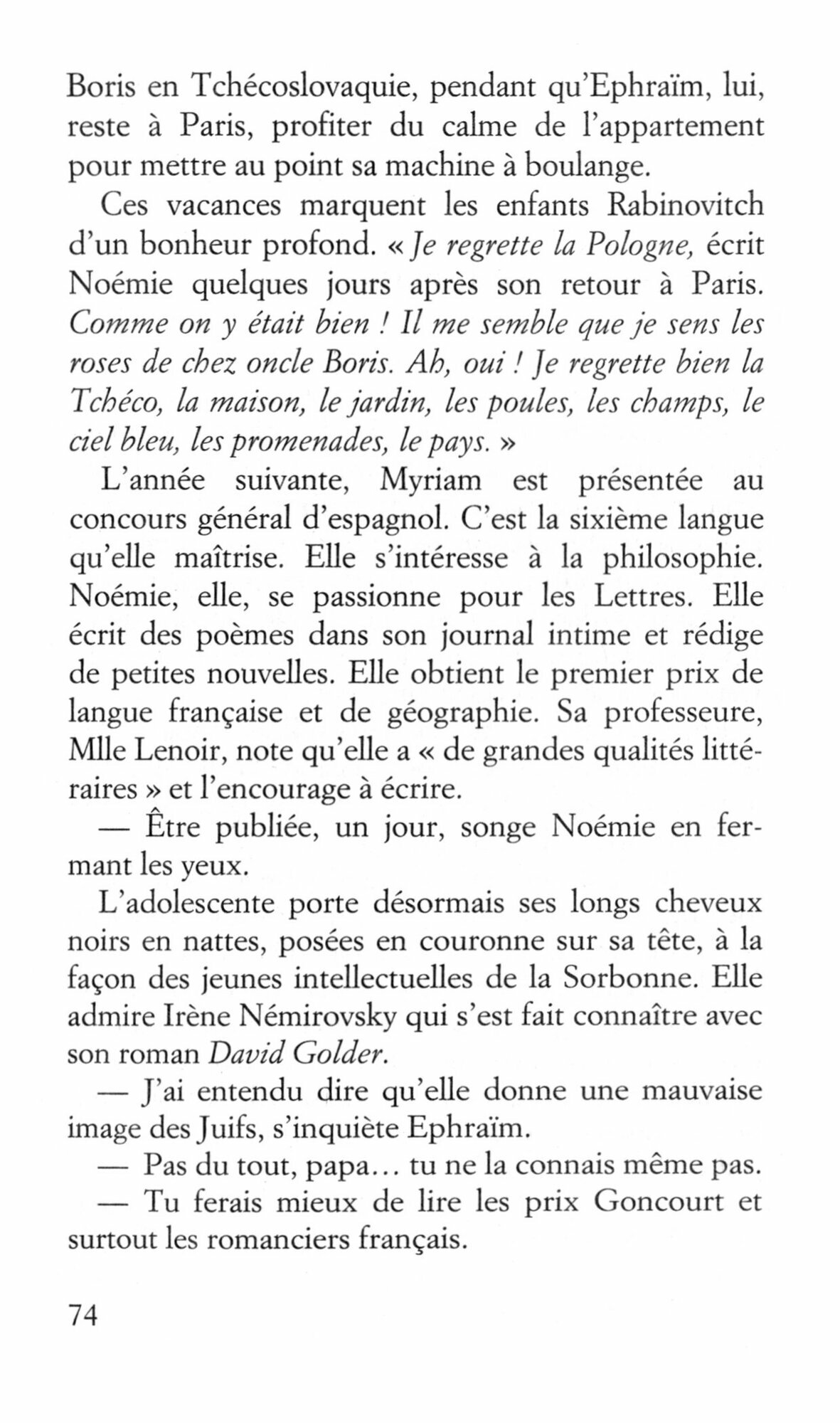 J’ai retrace le destin romanesque des Rabinovitch, leur fuite de Russie, leur voyage en Lettonie puis en Palestine. Et enfin, leur arrivee a Paris, avec la guerre et son desastre.