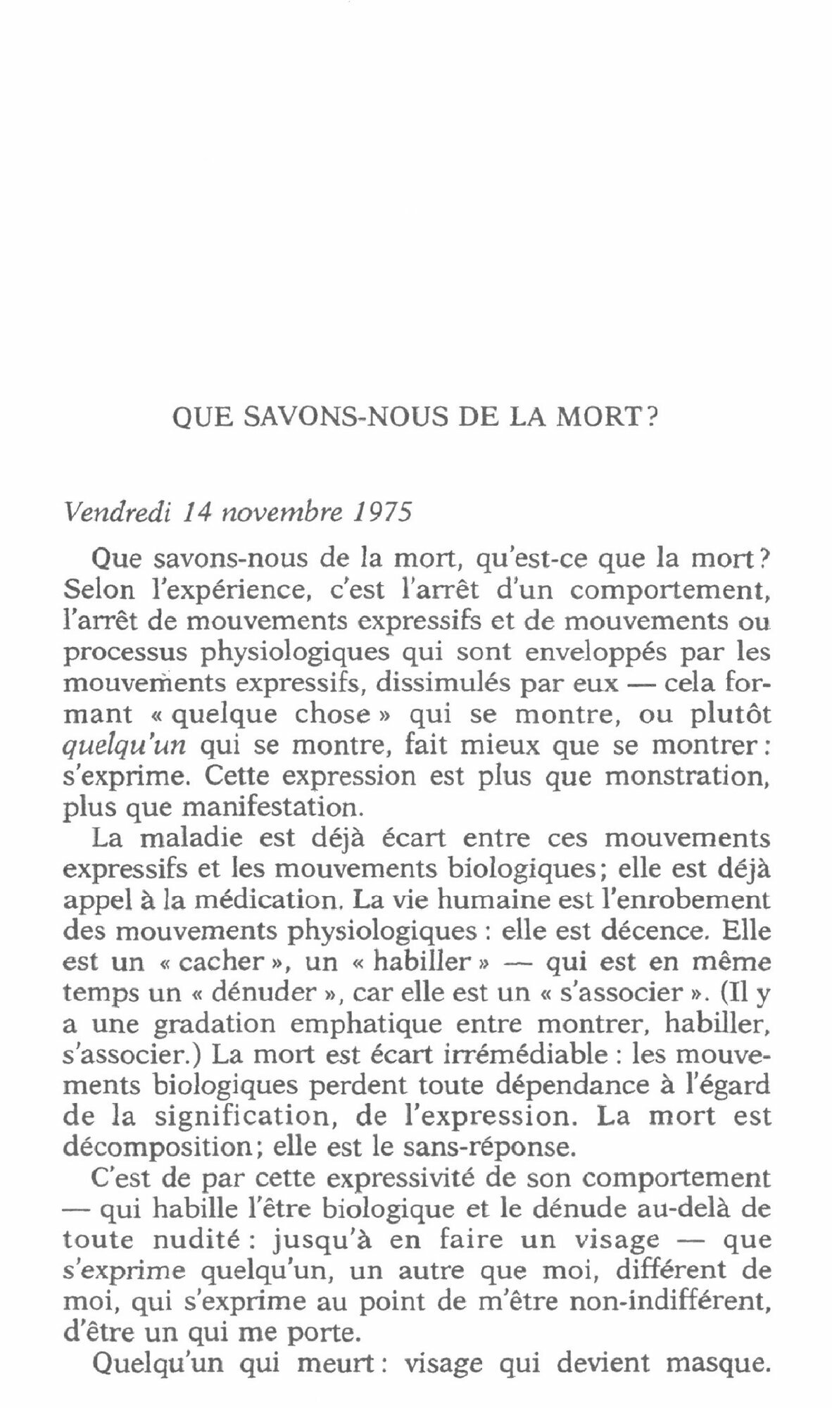 Deux cours. Les deux derniers professes par Emmauel Levinas en Sorbonne, durant l'annee universitaire 1975- 1976. Deux cours qui sont comme une glose mediative autour de quelques mots : Dieu, la mort, le temps.