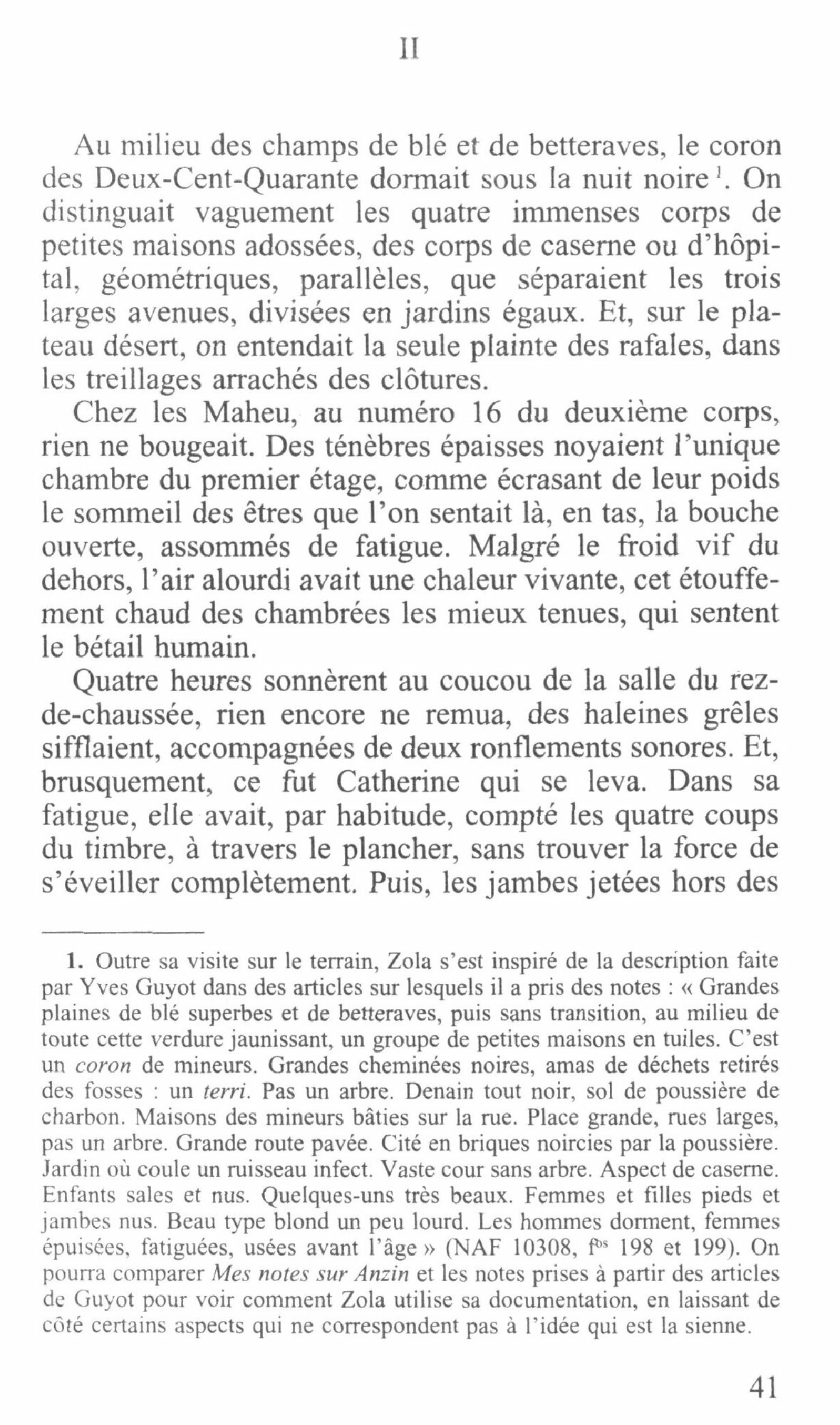 Voici, dans la France moderne et industrielle, les " Miserables " de Zola. Ce roman des mineurs, c'est aussi l'Enfer, dans un monde dantesque, ou l'on " voyage au bout de la nuit ". Mais a la fin du prodigieux itineraire au centre de la terre, du fond du souterrain ou il a vecu si longtemps ecrase, l'homme enfin se redresse et surgit dans une revolte pleine d'espoirs.