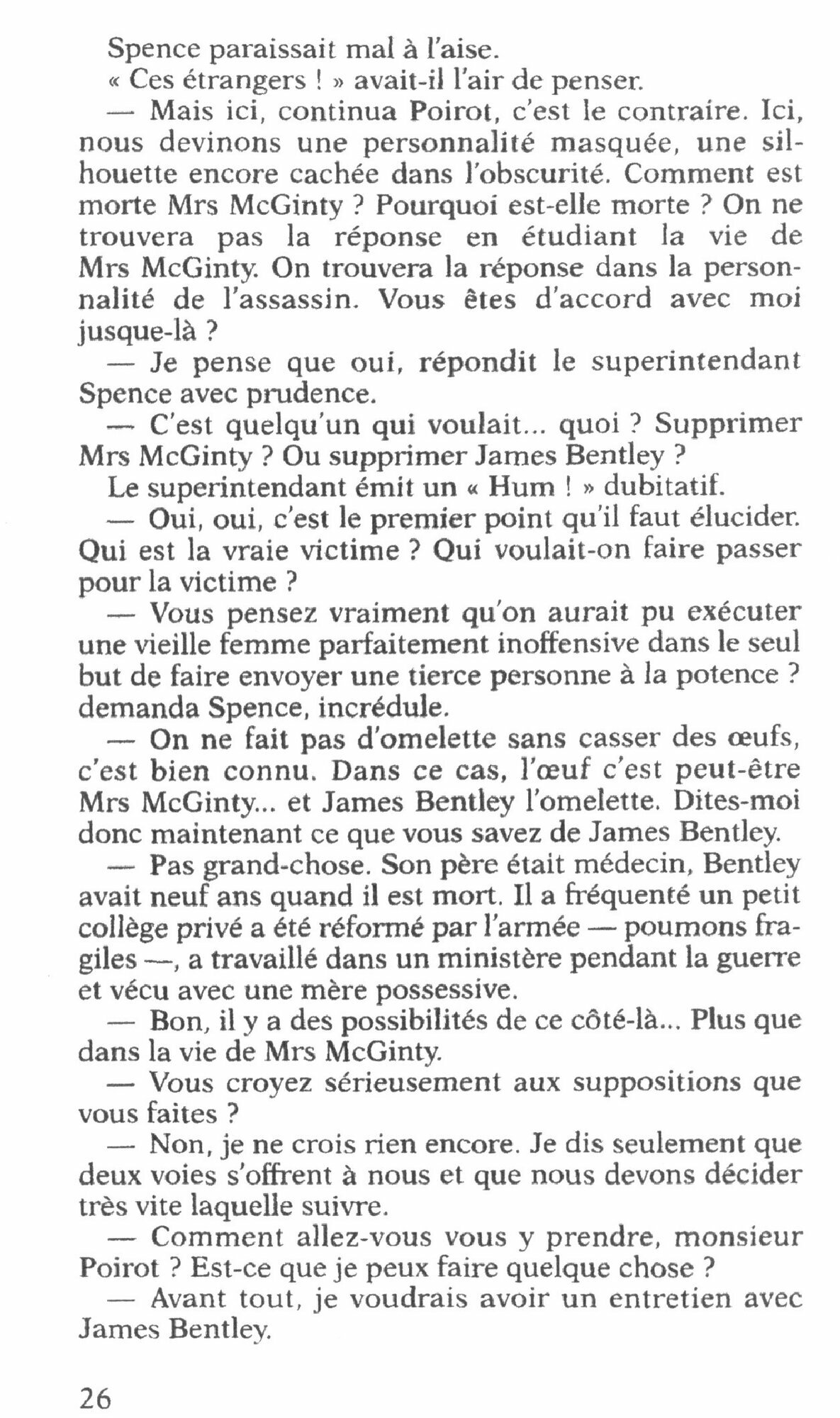 Assassiner une vieille dame pour lui voler trente livres, c’est d’un sordide ! Un crime aussi vulgaire ne peut interesser l’illustre Poirot… a moins que la police ne fasse fausse route depuis le debut ?