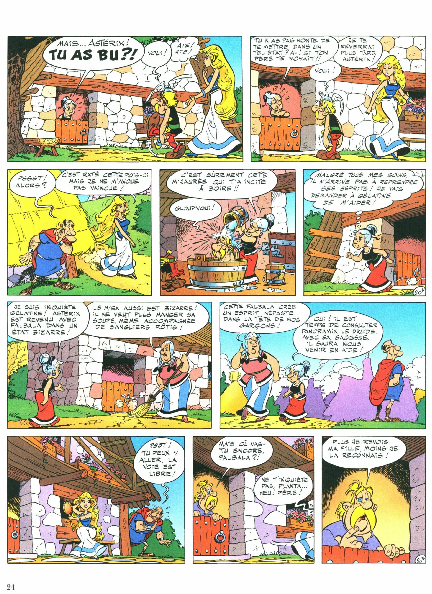 Le jour de leur anniversaire, Asterix et Obelix ont la surprise d'avoir la visite de leurs mamans, mais aussi de Falbala...Ou du moins celle qui se fait passer pour Falbala, mais qui n'est autre que Latraviata celebre tragedienne romaine envoyee en mission secrete dans le village gaulois par Pompee. La belle actrice va-t-elle semer la discorde entre les deux inseparables comperes ? Ou ceux-ci vont-ils dejouer la mascarde ?