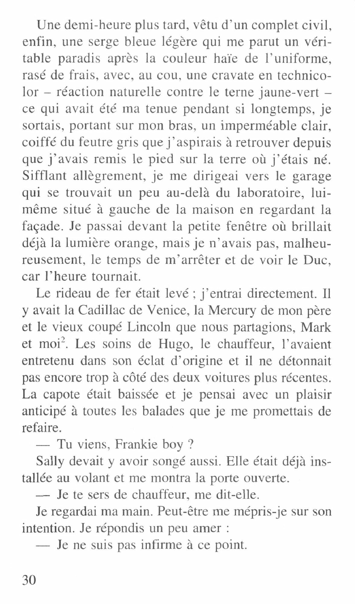 J'ai un sujet de roman policier que j'ecris pour Duhamel (serie noire). C'est un sujet tellement bon que j'en suis moi-meme etonne et legerement admiratif. Si je le loupe, je me suicide au rateloucoume et a la banane frite.