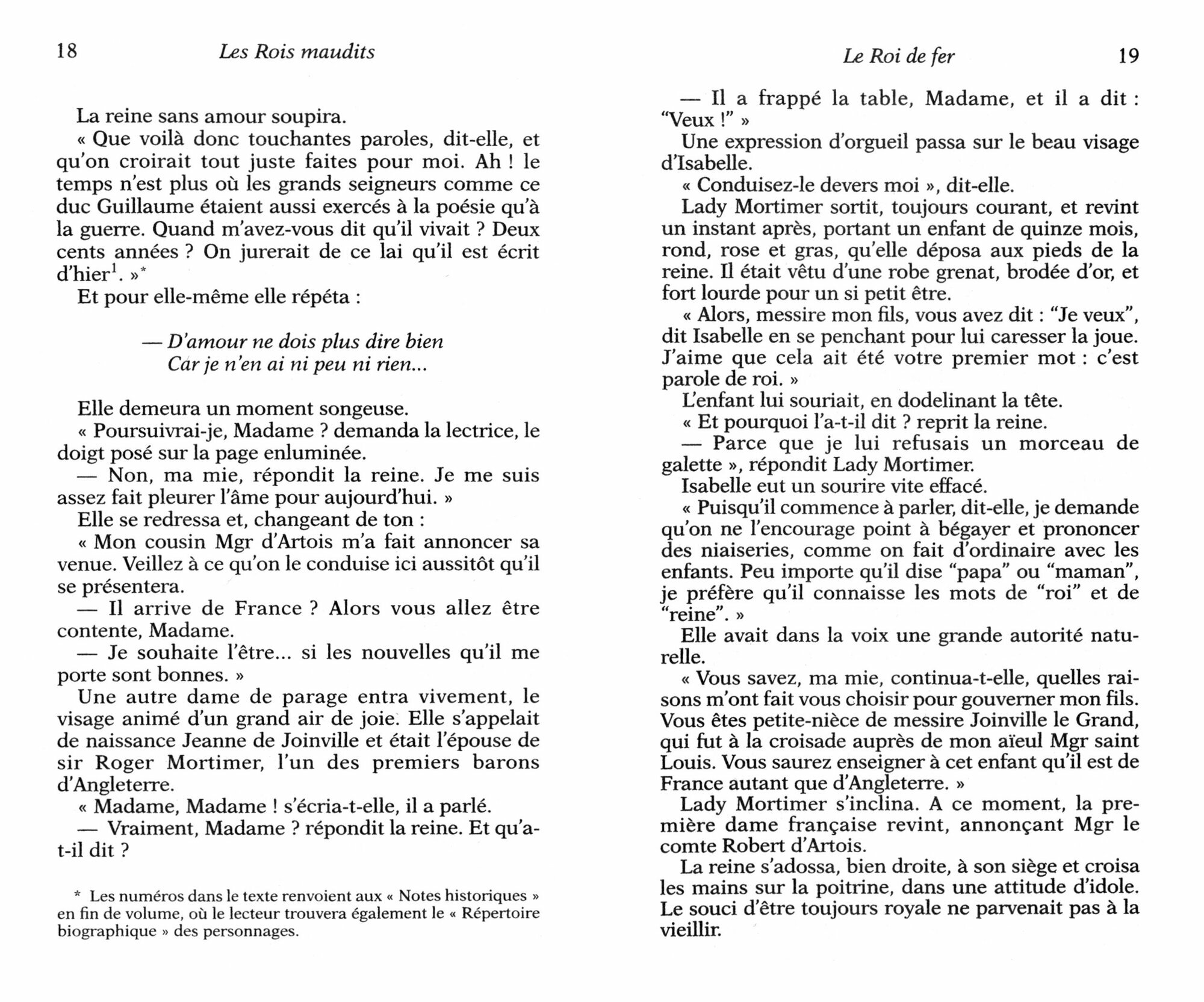 Le Roi de fer, premier volume du cycle, a pour figure centrale Philippe IV le Bel, roi d’une beaute legendaire qui regnait sur la France en maitre absolu. Tout devait s’incliner, plier ou rompre devant l’autorite royale. Mais l’idee nationale logeait dans la tete de ce prince calme et cruel pour qui la raison d’Etat dominait toutes les autres.