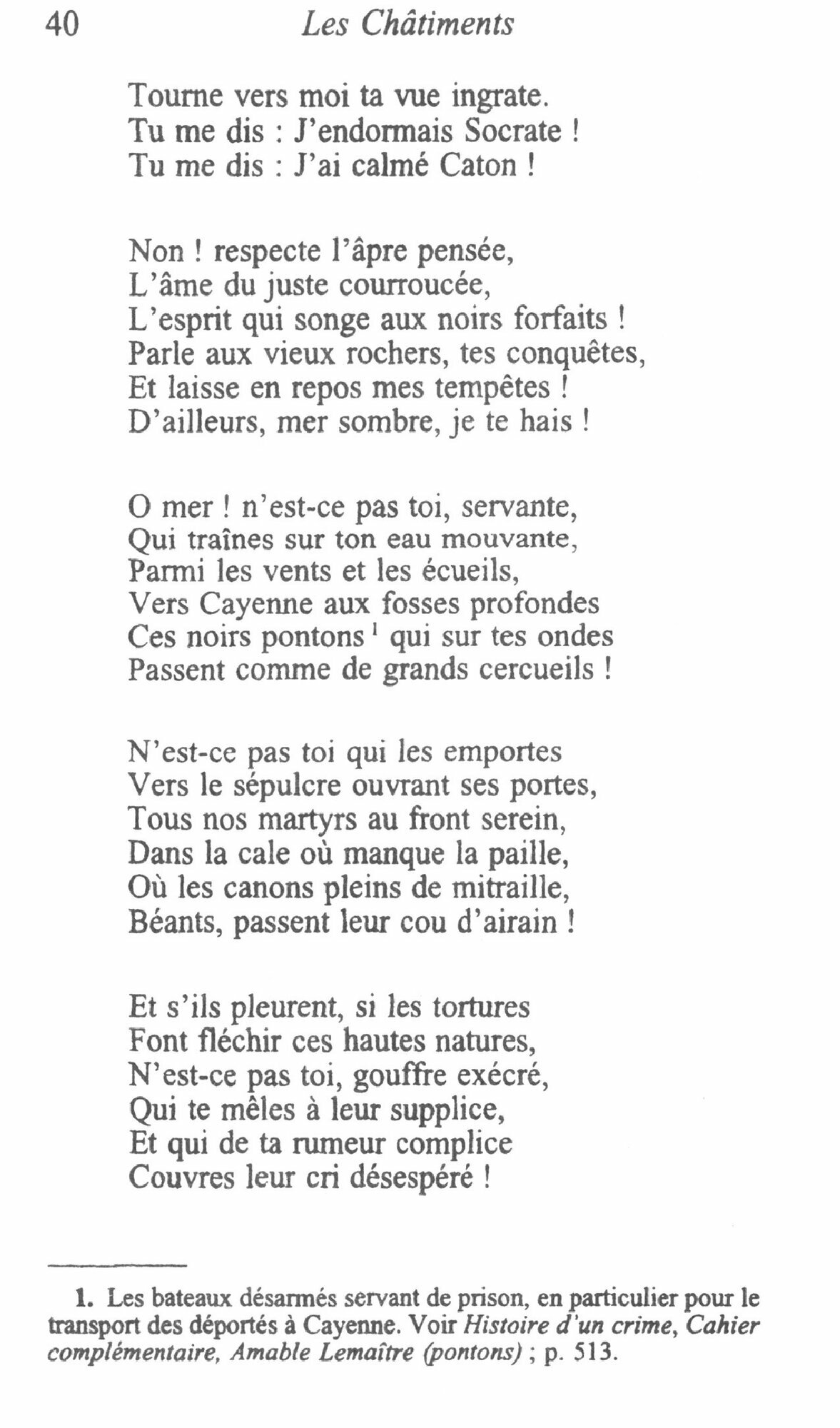 L’histoire ne marche pas a reculons. On ne fonde pas un empire bourgeois sur les ruines d’une republique. Pour l’avoir clame, Victor Hugo est exile par celui qu’il appelait Napoleon le Petit, caricature de l’autre, celui d’Austerlitz. La Republique, croit-il, c’est le progres moral, la vertu individuelle, la legitimite, le peuple justement represente. « Dix millions, cent millions de voix scrutinant en masse ne comptent pas devant cet atome, devant cette parcelle de Dieu, l’ame du juste. » Victor Hugo sera ce juste qui se dresse devant le coup d’Etat du prince Louis-Napoleon. « Sonnez, sonnez toujours, clairons de la pensee. » Ils resonnent encore dans ces vers grandioses et passionnes, pleins d’un reve de justice et d’egalite.