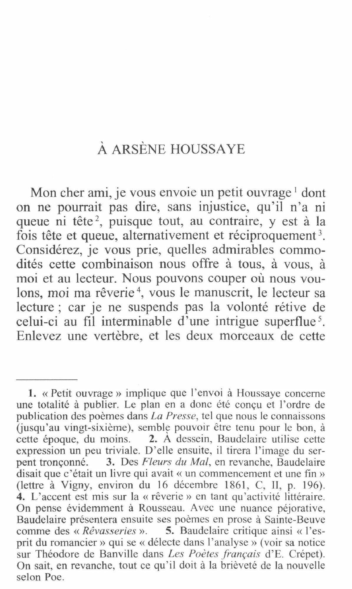 Bien que le poete y songeat depuis 1857, l'-annee des Fleurs du Mal, Le Spleen de Paris ne parut que deux ans apres sa mort, en 1869. Ses poemes en prose constituaient pourtant a ses yeux le « pendant » de ses pieces en vers, et les deux livres, en effet, se font echo a maints egards. Mais, a la difference des Fleurs du Mal, ce n'est pas ici un recueil compose qui nous est offert : un espace de liberte, bien plutot, ou le ?aneur temoigne d'un nouveau regard venu a l'homme moderne pour lequel la realite multiplie ses images..