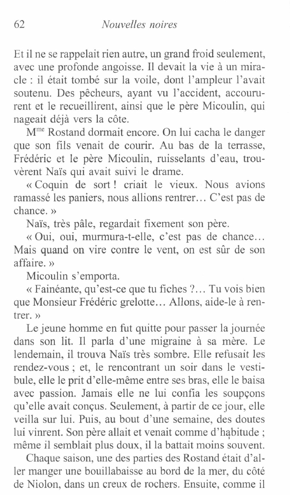 Ecrites pour l’essentiel entre 1875 et 1880, les nouvelles de Zola ont ete publiees, incompletement et dans un ordre aleatoire, en 1882 et en 1885. Elles sont, tout autant que ses romans, revelatrices de l’attention que l’auteur portait au monde contemporain, des pentes de son imaginaire et de sa virtuosite narrative. Henri Mitterand en propose une edition complete dans ce volume et dans celui qui lui fait pendant, intitule Nouvelles roses. Il a choisi d’y mettre en evidence les alternances de tons que Zola a menagees d’une nouvelle a l’autre. Les Nouvelles noires ont ainsi en commun une ligne narrative qui conduit les principaux protagonistes a une destinee tragique ou a une vie manquee. Le volume regroupe en trois triades « Nais Micoulin », « Pour une nuit d’amour », « Madame Sourdis » ; « Les trois guerres », « L’attaque du moulin », « Jacques Damour » ; « Le capitaine Burle », « La mort d’Olivier Becaille », « L’inondation ». Chaque nouvelle fait l’objet d’une presentation detaillee.