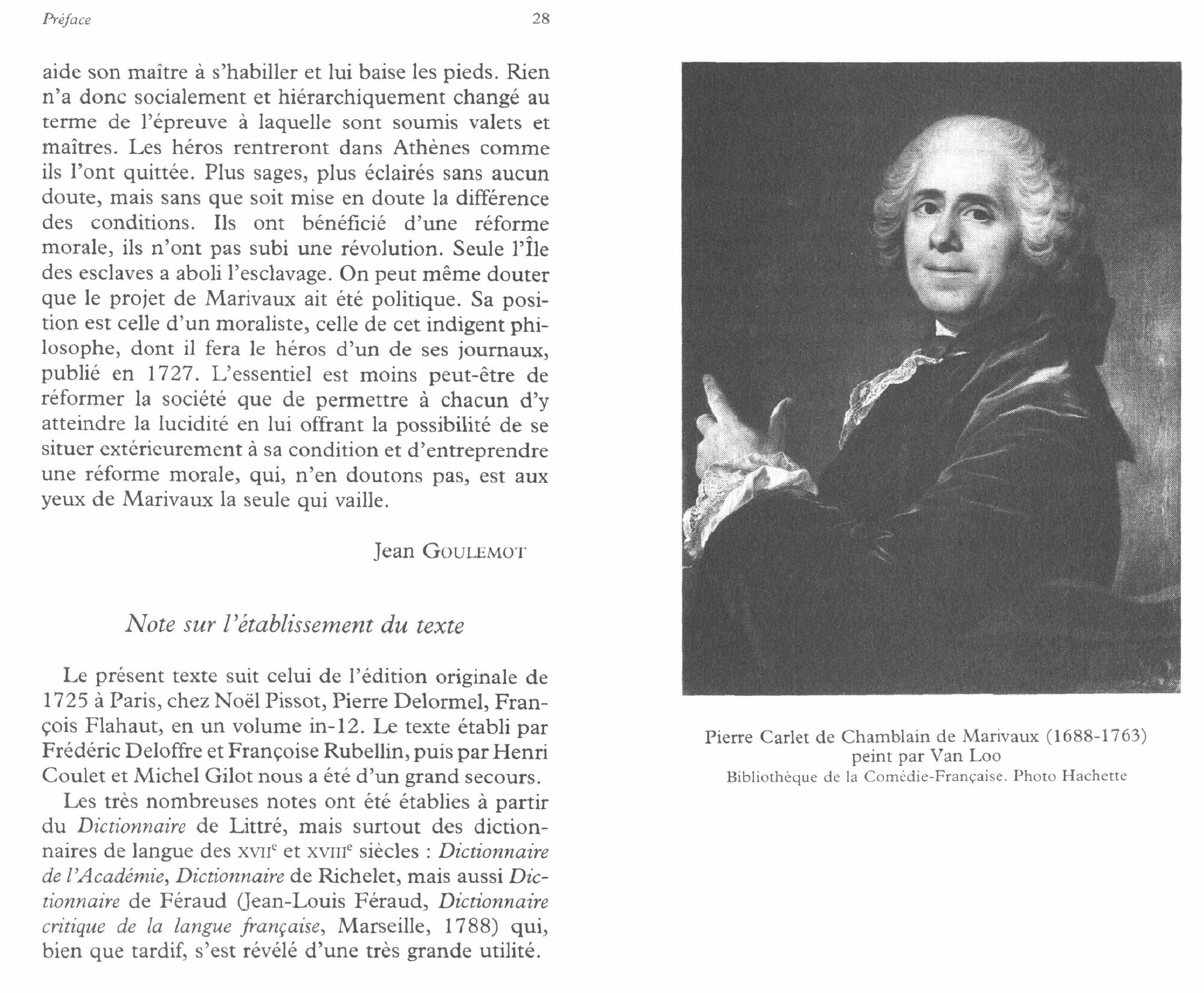 En 1725, c’est un monde social renverse que Marivaux donne a voir sur la scene du Theatre-Italien : la fragilite du pouvoir peut ainsi se devoiler, les ranc?urs enfouies se liberer, et le malheur d’une condition servile s’eprouver. Mais si l’inversion est bien politique, elle est egalement ludique, et cette piece serieuse aux faux airs d’utopie est bien une comedie : le spectateur s’y amuse aux depens des maitres que leurs valets caricaturent, et il rit autant des maladresses que commettent ces valets lorsqu’ils tiennent le role des maitres.