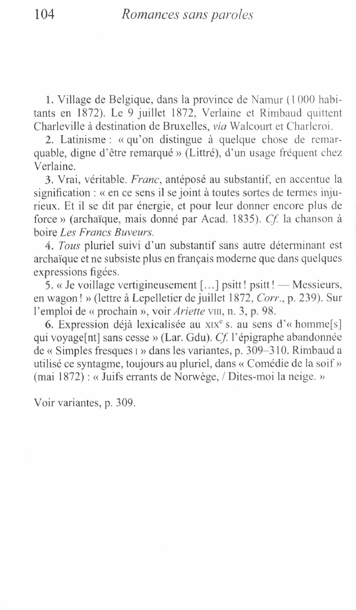 En 1874, lorsque Verlaine reprend a Felix Mendelssohn le titre de ses courtes pieces pour piano, Romances sans paroles, cette sorte de chanson entree en litterature a l’epoque romantique releve deja d’une tradition desuete. Mais l’essentiel ici est qu’elle nous dise la primaute du chant dans une poesie a la fois naive et savante dont le lyrisme melancolique exprime de maniere alors neuve ce que le poete lui-meme appelait « le vrai vague » ou fusionnent des sensations diverses. Et ce recueil a l’atmosphere noyee, il suffit que le sens simplement y murmure.