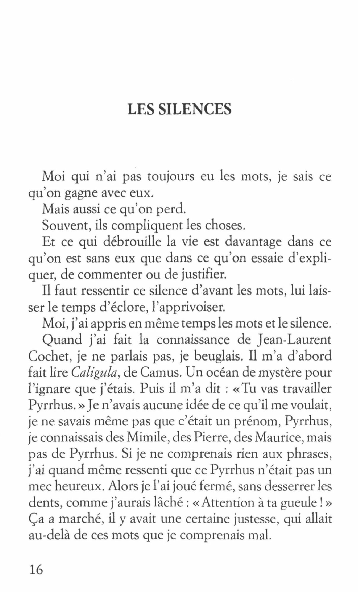 « Je ne depends de rien ni de personne. Je prefere vivre a mon gre et selon ce qui se presente que dans la peur de perdre une place. Il n’y a pas de place a prendre, de toute facon, il n’y a que des chemins a suivre. Des voyages que l’on fait grace a des regards differents. Je ne vais pas aller chercher le client. Je n’ai pas a plaire. A personne. C’est ma liberte. Je ne fais rien pour paraitre gentil et sympathique. Je vis, tout simplement. Les gens peuvent etre decus par moi, me perdre, me retrouver, accepter ou non ma diversite, je refuse de me mutiler. Chacun de nous est un monde et je ne veux pas laisser dans l’ombre une moitie de mon monde. Je prefere vivre ma lumiere et mon obscurite. C’est ca mon equilibre. »