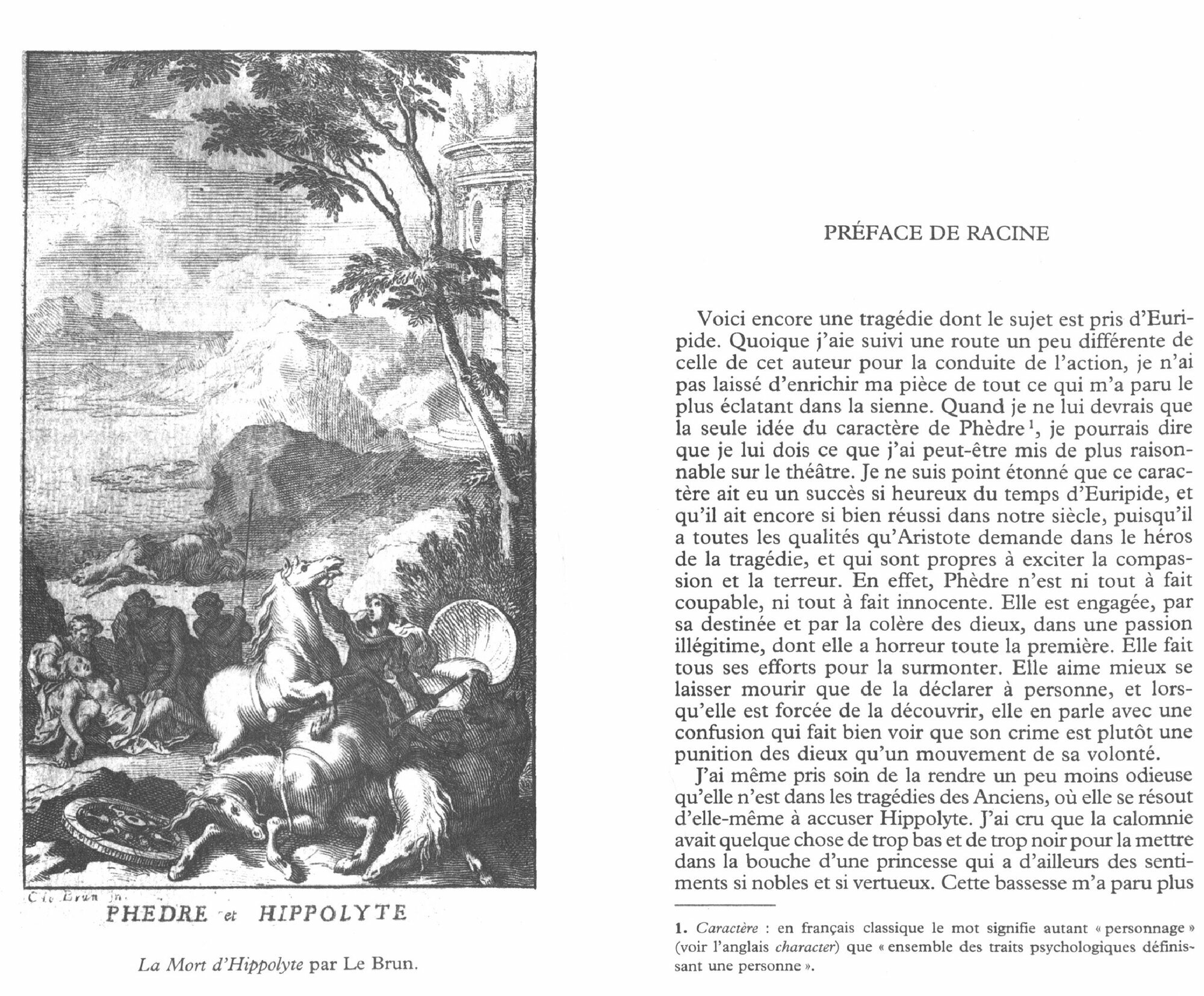 La legende de cet amour interdit, puisque Hippolyte est le fils de Thesee a qui Phedre est mariee, Racine l’emprunte a Euripide et a Seneque. Mais alors que la tradition theatrale placait Hippolyte au devant de la scene, en 1677, Racine l’en ecarte au profit de Phedre, pour ecrire la tragedie d’une femme torturee, sans doute coupable mais egalement frappee par la fatalite, qui lutte de toutes ses forces pour combattre une passion qui la submerge et finit par porter la mort autour d’elle – et sur elle.