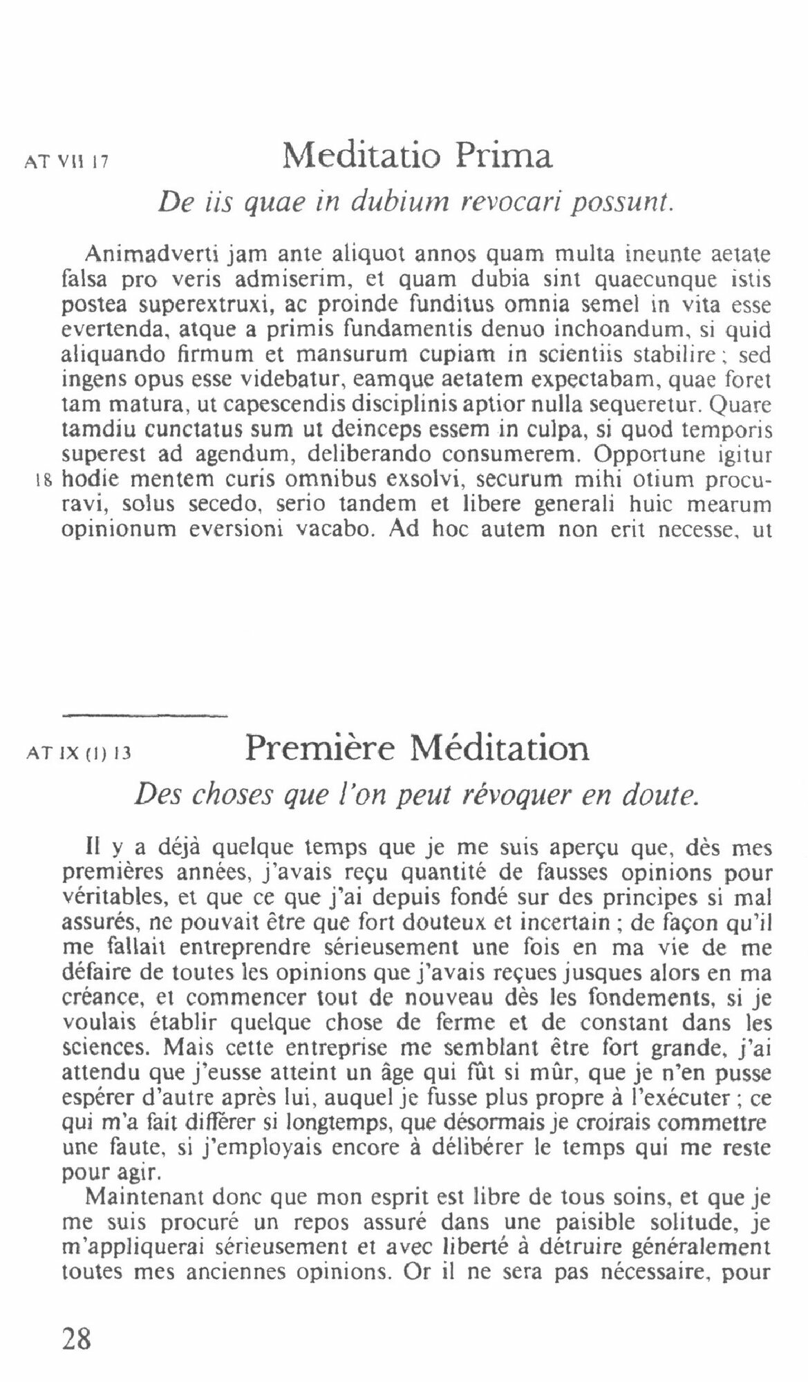 Initialement redigees en latin, les Meditations (1641) ont ete ensuite traduites en francais par le duc de Luynes (1647). Descartes a lui-meme revu et retouche la traduction, qui s’ecarte du texte originel par de nombreuses distorsions et nuances. Le travail de Michelle Beyssade permet desormais un acces direct a la pensee de Descartes telle qu’elle s’est exprimee a travers le latin.