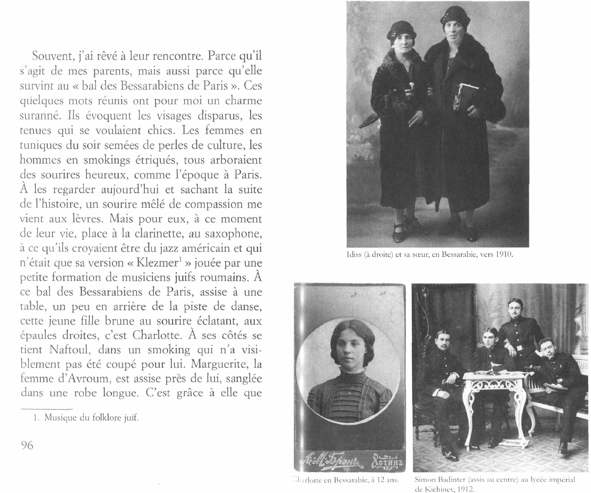 J'ai ecrit ce livre en hommage a ma grand-mere maternelle, Idiss. Il ne pretend etre ni une biographie, ni une etude de la condition des immigres juifs de l'Empire russe venus a Paris avant 1914.