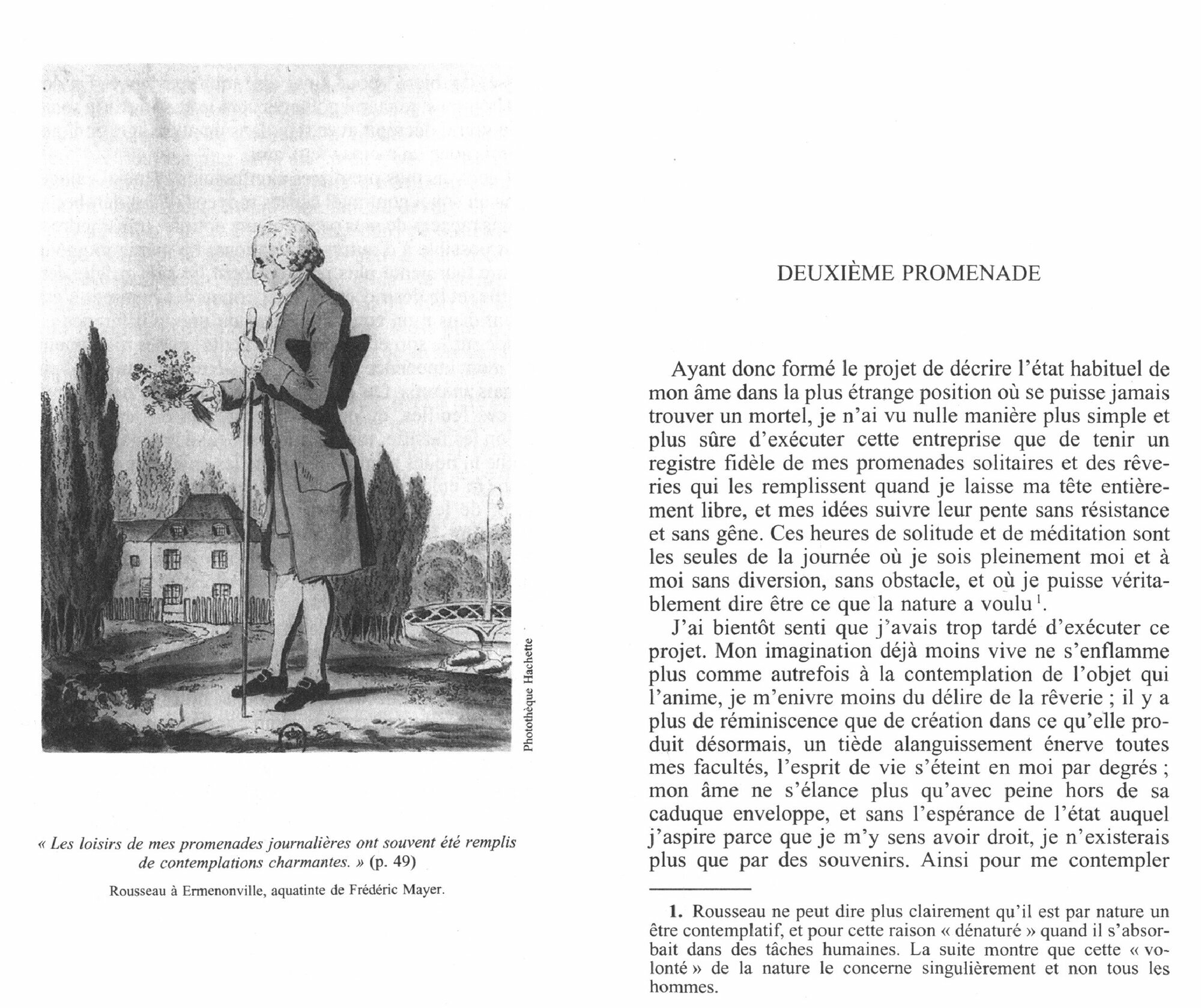 Mais ces meditations sont aussi des promenades ou la reverie devient expansion de l’etre, ou le contact avec la nature est source de bonheur dans la pure conscience d’exister. Une nouvelle maniere d’ecrire s’inaugure donc, un libre parcours sans effort que la ligne melodieuse d’une prose souvent poetique rend admirablement sensible. Ces Reveries que Rousseau nous laisse lorsqu’il meurt a Ermenonville en juillet 1778, il se peut ainsi qu’elles ne nous soient pas adressees : elles nous sont en tout cas destinees.