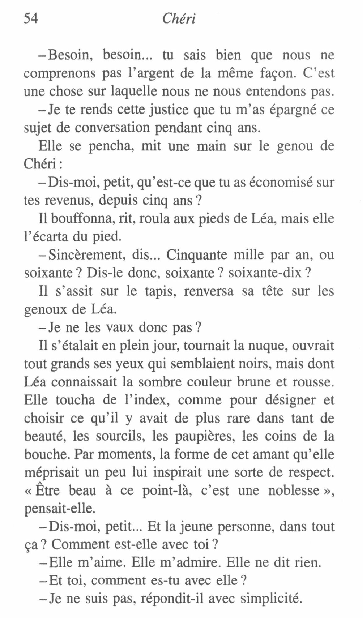 Malgre une difference d'age entre eux, Lea de Lonval est la maitresse de Fred Peloux, surnomme Cheri. Lea ressent les moindres effets d'une passion qu'elle pense etre la derniere. Il suffira a Cheri d'epouser la jeune Edmee pour comprendre que la rupture avec Lea ne va pas sans regrets. Peinture narquoise d'un certain milieu demi-mondain.