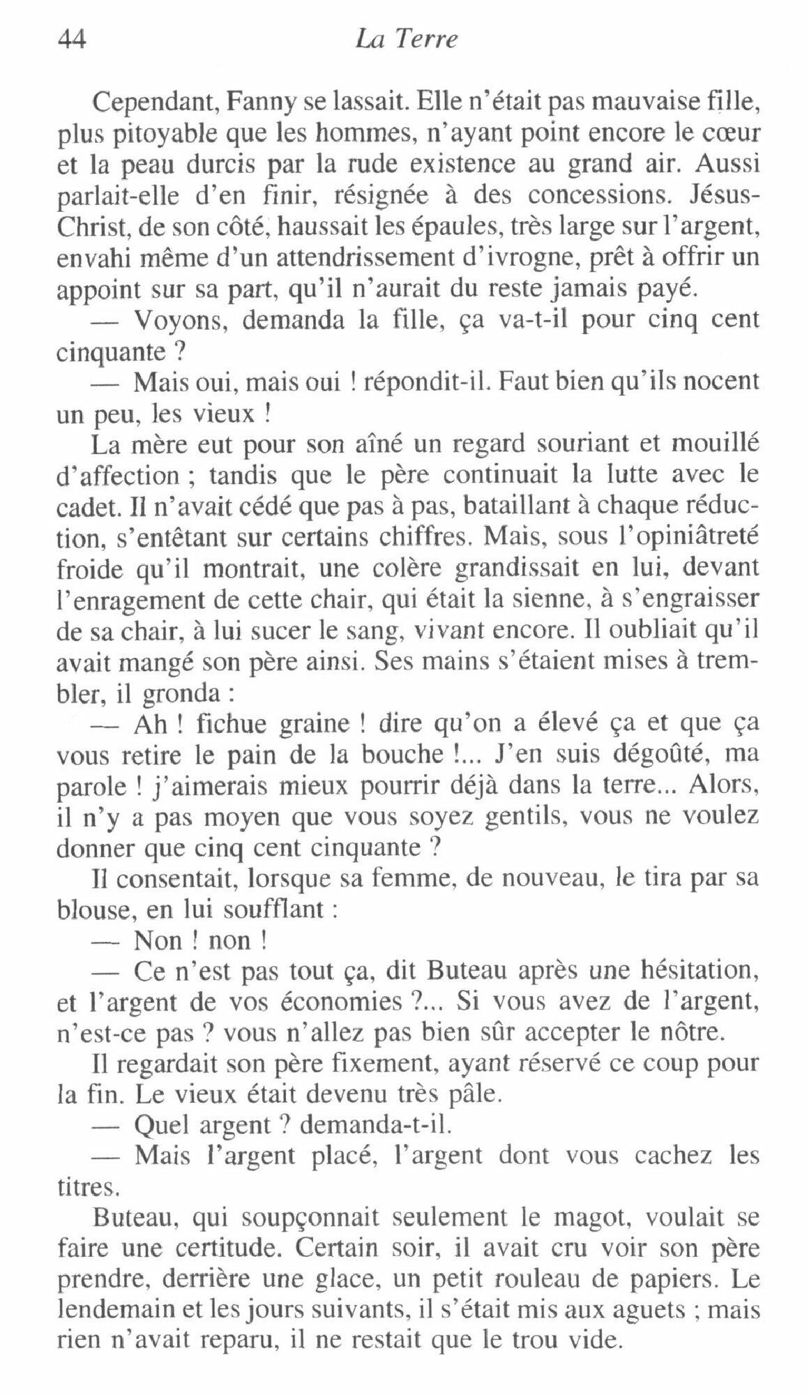 Qu’il s’agisse en effet de la terre ou de la sexualite, c’est le desir de possession brutale qui est au c?ur de ce quinzieme roman des Rougon-Macquart. Mais ce que souhaite surtout Zola, lorsqu’il fait paraitre son livre en 1887, c’est brosser aussi completement que possible un tableau de la campagne et de la paysannerie, decrite comme une sorte d’humanite primitive. Et parce qu’il n’ecarte pas les formes les plus vives ni les plus frustes de cette vitalite elementaire, son roman a heurte la critique. Mais le public ne l’a pas ecoutee et, a la mort de l’ecrivain, La Terre demeurait l’un de ses romans les plus lus.