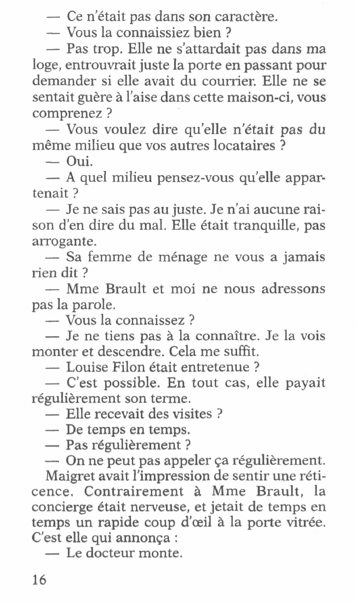 Reste a decouvrir le coupable. Et son mobile. Et pour cela, a affronter la personnalite imposante du medecin, que Maigret semble redouter...