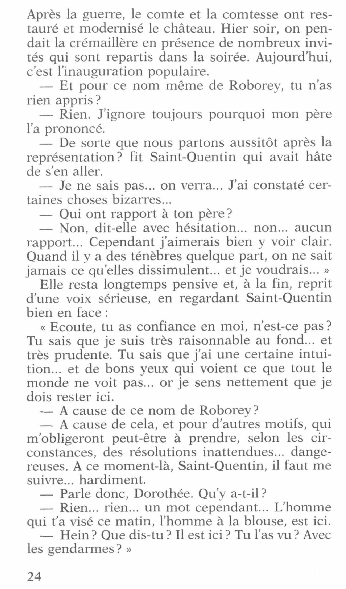 Ou, quand, comment? une medaille d'or est le talisman necessaire a sa decouverte. Jean d'Argonne la trouve , mais est tue avant d'avoir pu la montrer a ses cousins Chagny. ils savent seulement qu'elle porte la devise : In robore fortuna- la fortune est dans ... la fermete d'ame.... la force...ou le chateau de Roborey ?