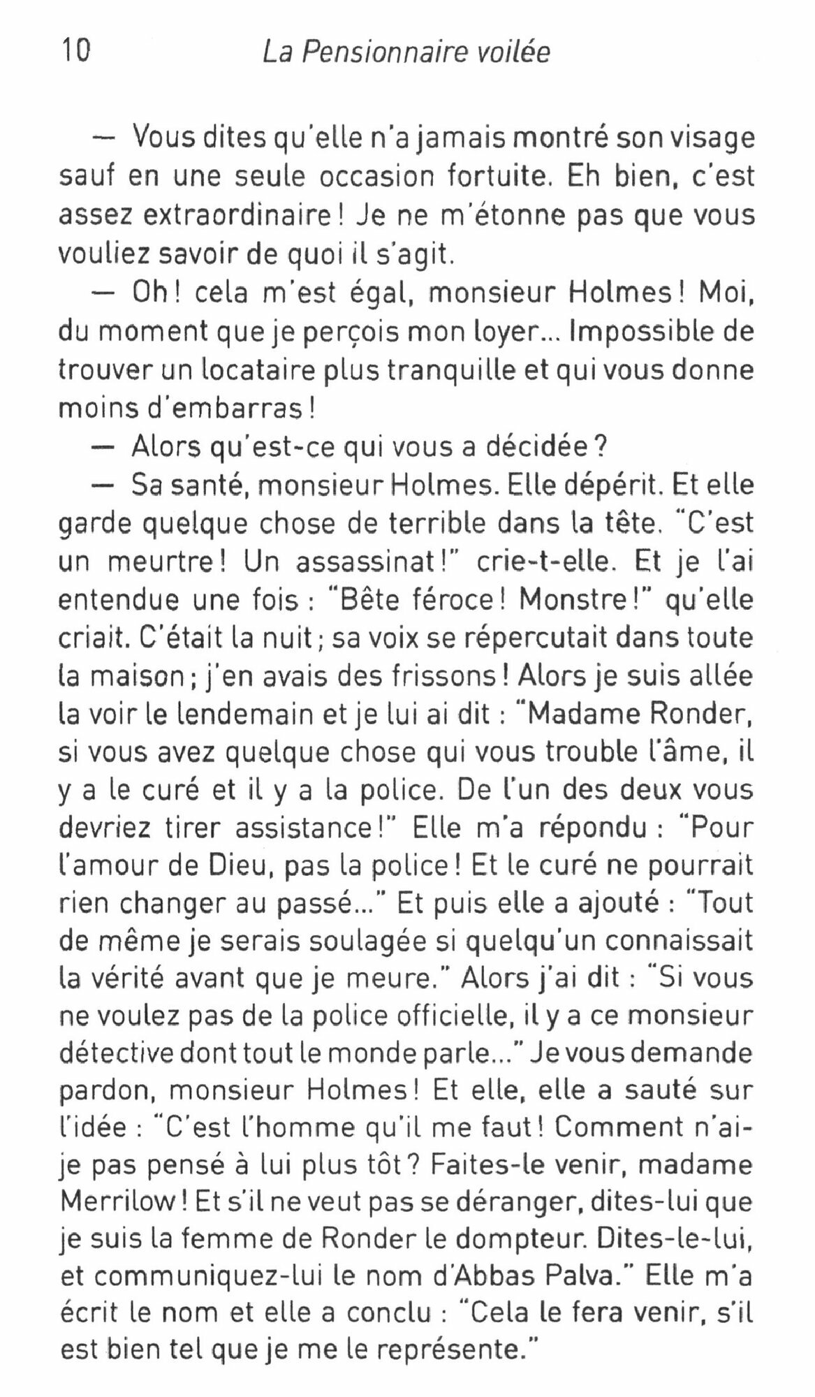 Quel affreux secret dissimule donc Mme Ronder – pensionnaire depuis plus de sept ans chez Mme Merrilow– dont le visage, atrocement mutile, est toujours recouvert d’un voile epais ? « La Pensionnaire voilee» n’est pas une histoire criminelle a proprement parler, mais celle d’un drame humain que Sherlock Holmes saura faire resurgir du passe.