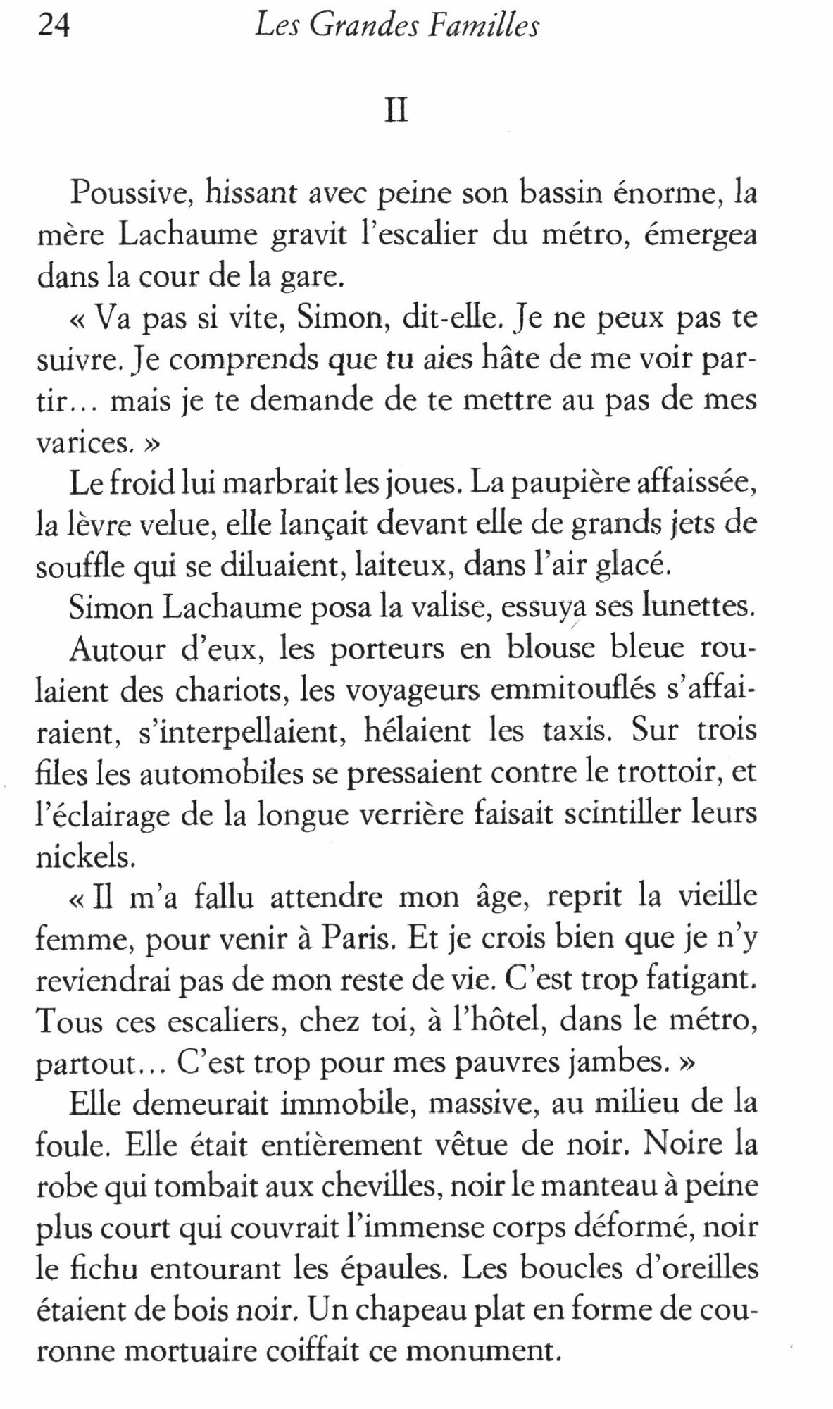 Les Grandes Familles, prix Goncourt, est l'un des romans les plus celebres de la litterature francaise contemporaine. Salue unanime ment par la critique des sa parution, traduit dans le monde entier et porte a l'ecran avec un tres vif succes, ce grand roman de societe dans la tradition balzacienne et tolstoienne offre une fresque impitoyable des milieux politiques et financiers entre les deux guerres mondiales.