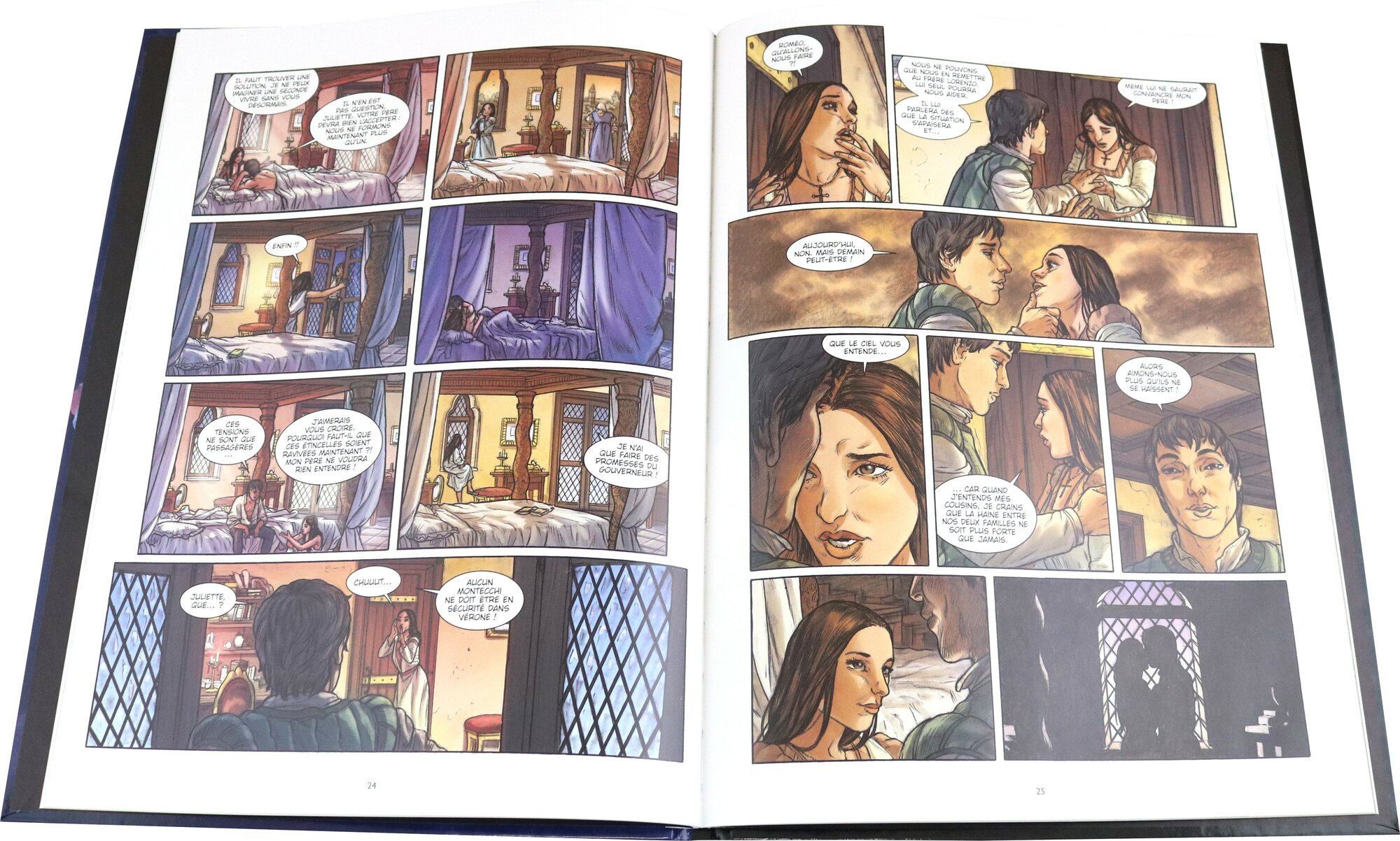 Verone, 1330. Ennemis jures, les Cappelletti et les Montecchi se cherchent indefiniment querelle. Le gouverneur de la ville reve de mettre fin a cette inimitie, en vain. Si la paix doit un jour apaiser les deux familles, elle viendra d’un mariage… Car Romeo Montecchi aime une Cappelletti, Juliette ! Au peril de leur vie, les deux amants decident de s’unir en secret devant le Frere Lorenzo di Reggio. Helas, suite a un nouveau bain de sang dans les rues de Verone, Romeo est condamne a l’exil. Juliette, inconsolable, sera promise a un autre homme… Dans leur tentative de sceller la paix et de voir leur amour triompher, les jeunes gens vont ecrire leur histoire pour l’eternite. Conte italien popularise grace a la tragedie de Shakespeare, l’histoire de Romeo et Juliette, symbolisant la purete de l’amour, est admirablement illustree par le trait delicat de Gianenrico Bonacorsi.