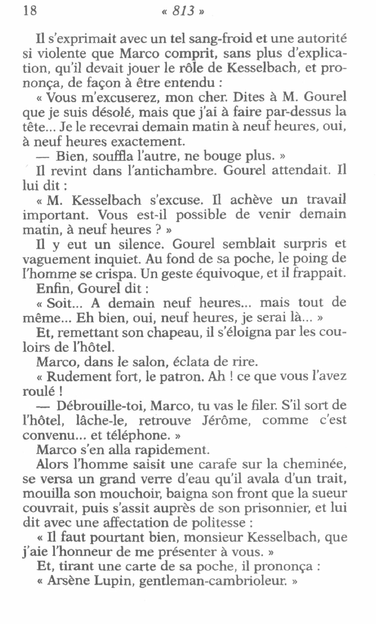 Telles sont quelques-unes des questions a propos desquelles s’affrontent la police – en l’occurrence un certain Lenormand, chef de la Surete –, l’impitoyable baron Altenheim et le gentleman-cambrioleur Arsene Lupin. Lequel devra egalement demasquer l’invisible assassin qui cherche a lui faire porter la responsabilite de ses crimes…