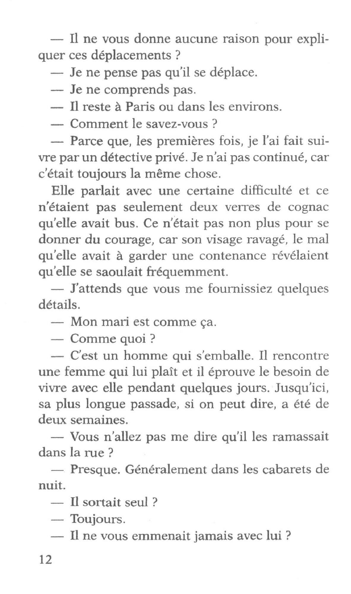 C'est a l'histoire d'un couple depuis longtemps desuni que Maigret va s'interesser ici, telle que lui permettent de la reconstituer les temoignages des amis et des domestiques. Et a une femme dont l'ascension sociale aura ete payee du prix de la solitude et de la decheance.