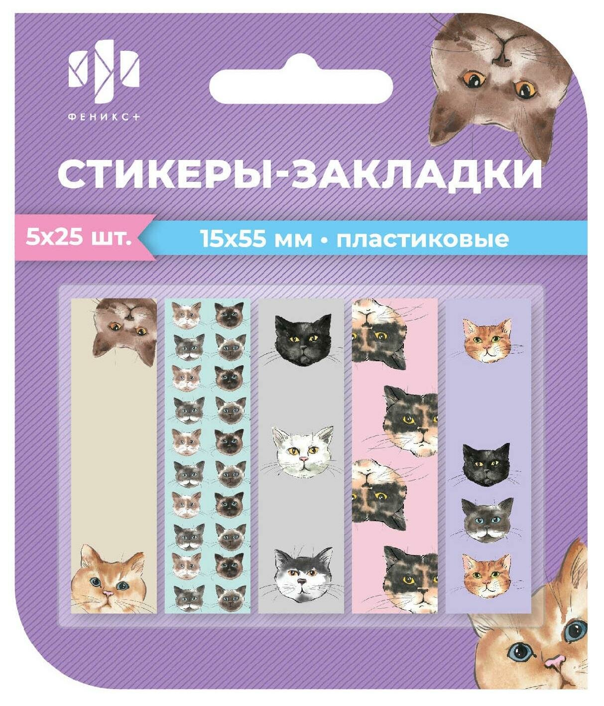 Стикеры-закладки пластиковые Коты 125 шт Феникс+