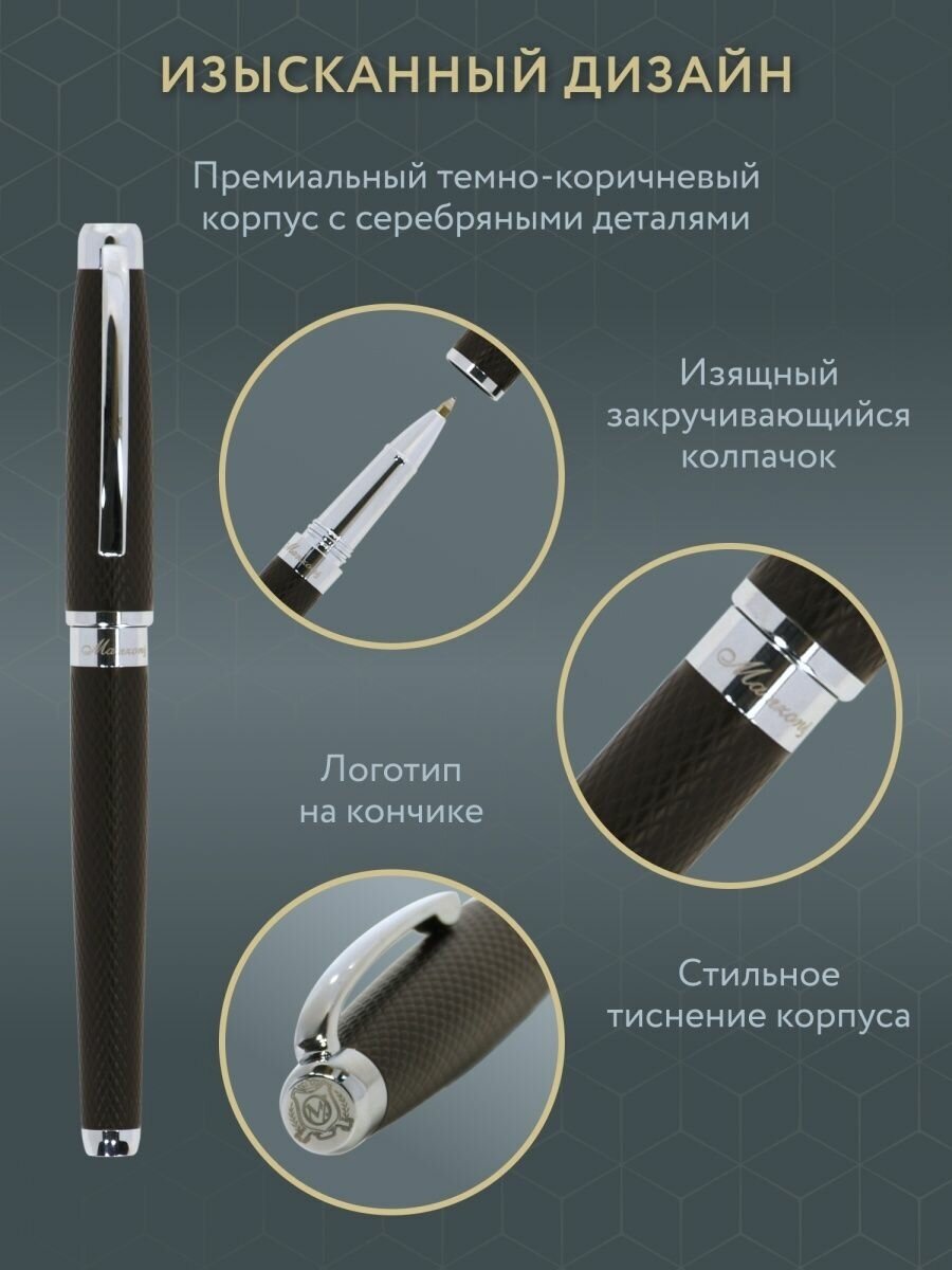 Представляем новую серию ручек от известного бренда Manzoni. Изысканная и элегантная ручка Manzoni Positano изготовлена из качественных материалов и обладает металлическим корпусом. Особенность этой ручки - закручивающийся колпачок, который придает новые ощущения от использования. Прекрасное сочетание премиального темно-коричневого цвета корпуса и серебряных деталей придает ручке изысканный стиль и неповторимый шарм.
