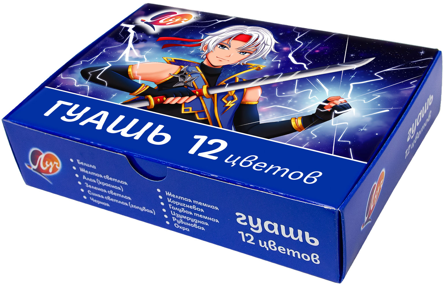 Набор Гуаши Луч серии "Аниме" 12 цветов в дизайне "Хиро". Специально для поклонников японской анимации и манги.