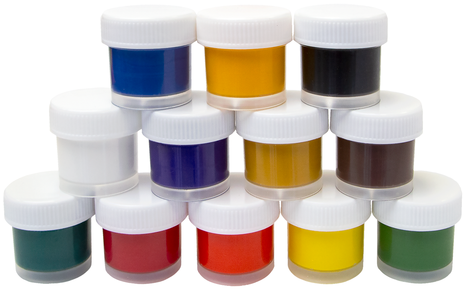 В наборе 12 пластиковых баночек объемом по 15 мл.