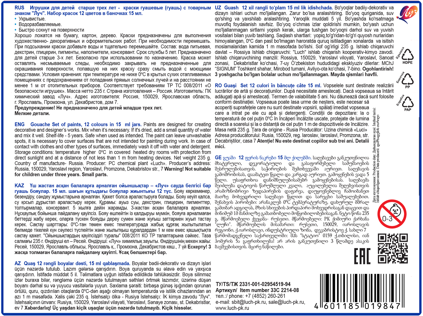 Состав гуаши: вода питьевая, декстрин, глицерин, пигменты, наполнители, консервант.