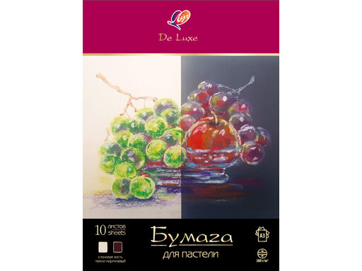 Бумага для пастели "Люкс" замечательно подходит для художественных техник, таких как пастель, масляная пастель, мел, карандаш или уголь, сангинаФормат: А3 (297 х 420).Количество листов: 10.5 листов бумаги цвета слоновая кость.5 листов бумаги цвета темно-коричневый.Плотность: 160 гр/м2.Папка: мелованный картон.