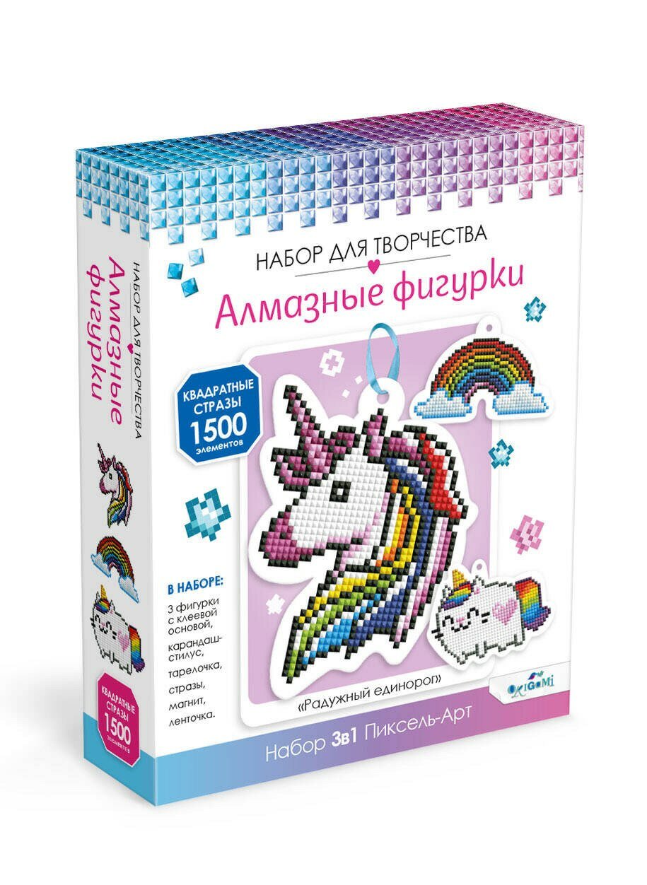 Набор алмазных фигурок. 3 в1. Радужный Единорог ОРИГАМИ