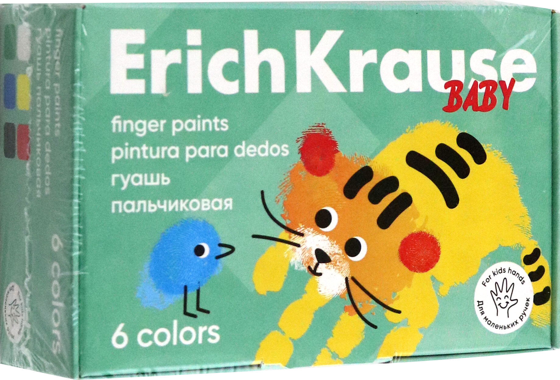 Гуашь пальчиковая ErichKrause Baby с Алоэ Вера, 6 цветов по 20 мл.