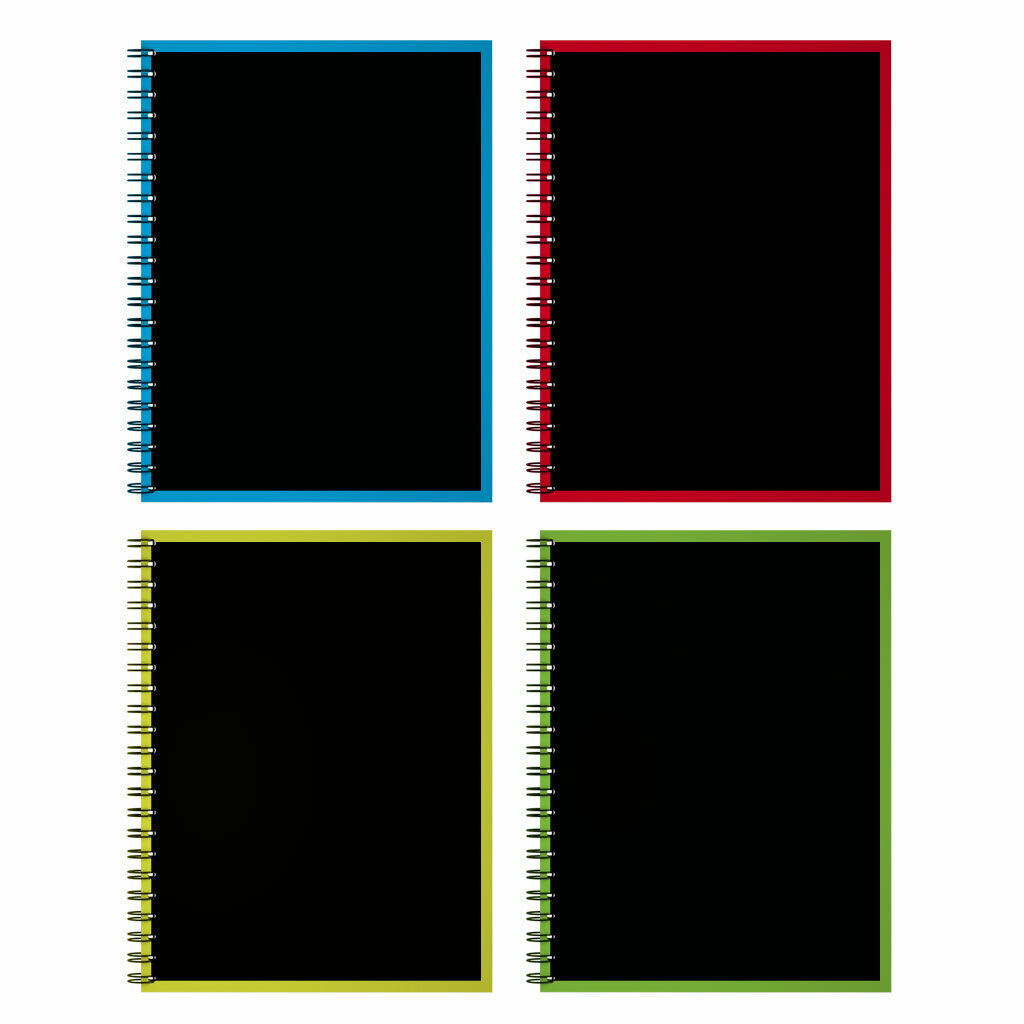 Тетрадь общая ученическая формата А4 (210х297 мм). Элегантный дизайн построен на контрасте черной внешней стороны обложки и яркой внутренней. Обложка из жесткого ламинированного картона с фактурным тиснением "лён". В блоке 120 листов в клетку. Бумага офсетная плотностью 60 г/м2. Цвет линовки - синий. Тип скрепления - спираль. Тетради одного цвета упакованы в термоусадочную пленку по 2 штуки. Товар поставляется в нескольких вариантах цвета без возможности выбора.