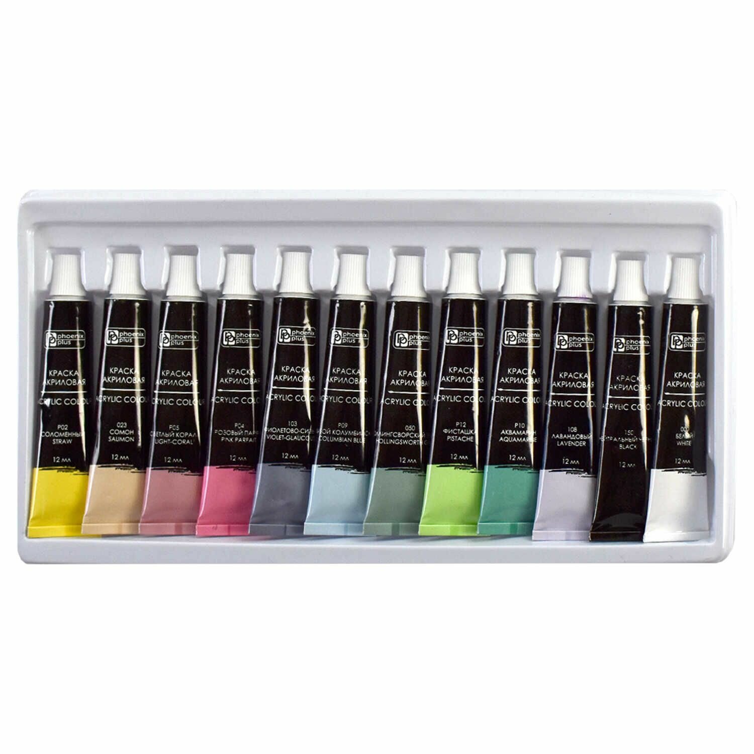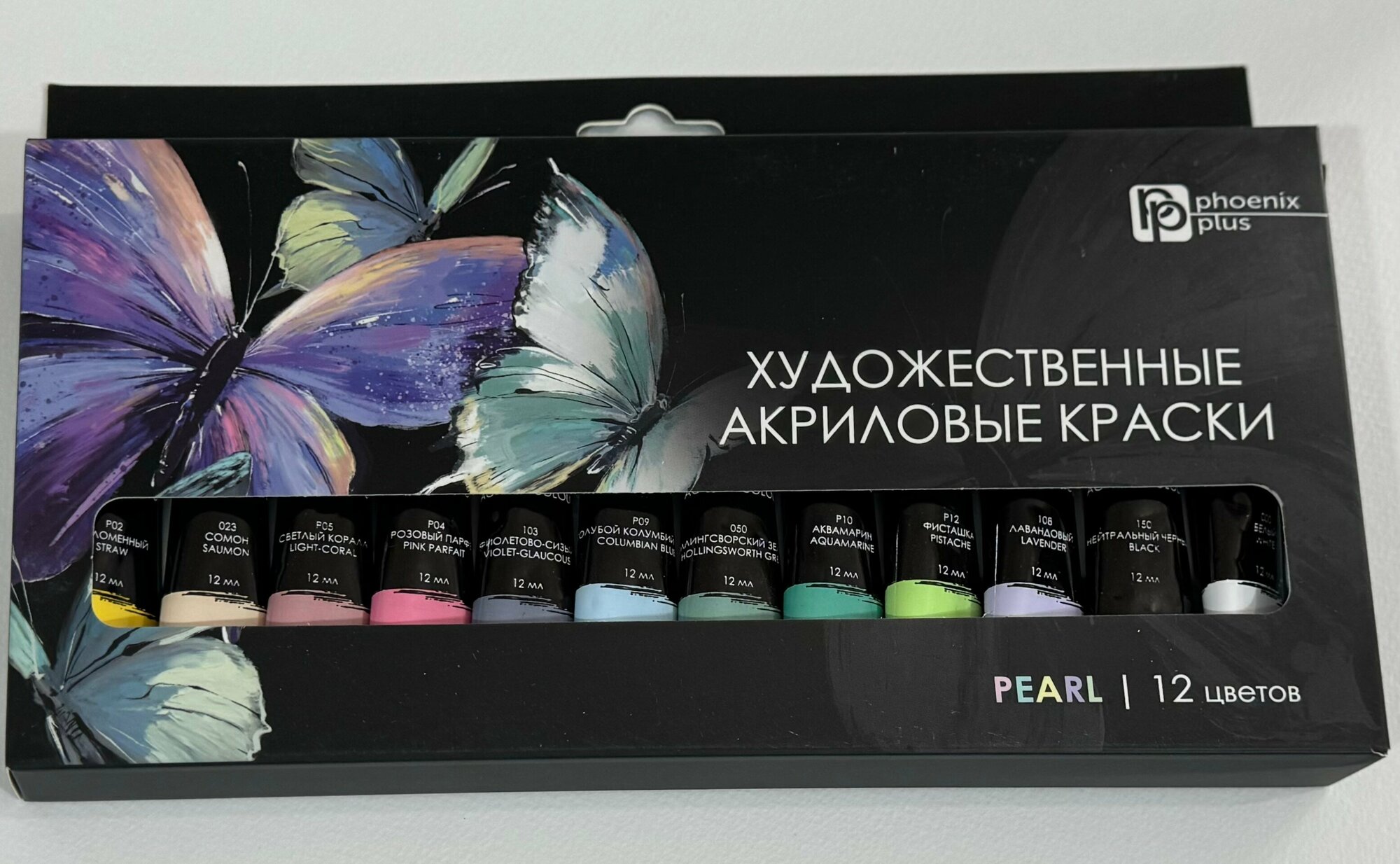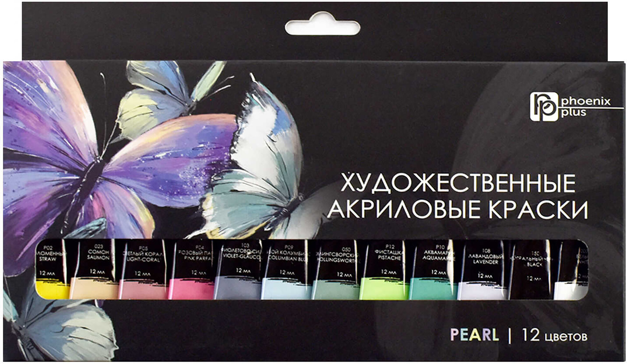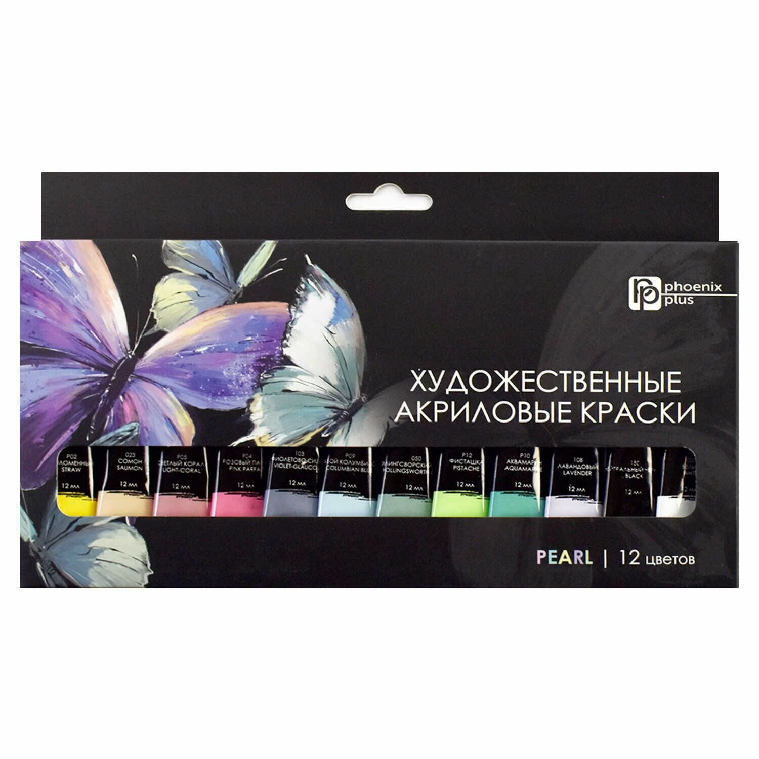 Краски акриловые Феникс+ арт. 64589/ 12 бабочки (25x12,5x2 см, 12 цветов, 12 мл, перламутровые цвета, картонная коробка).