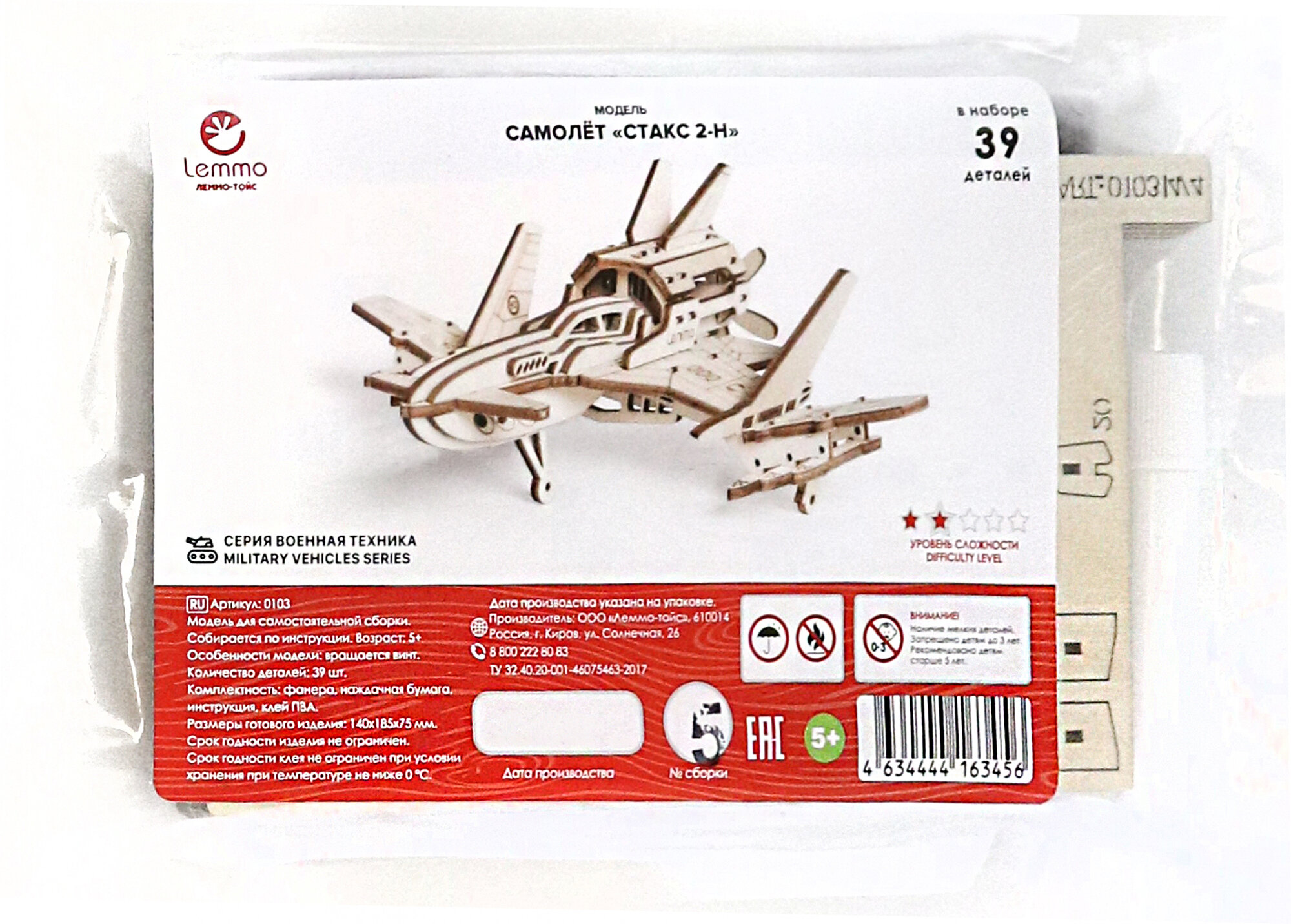 Деревянный конструктор 3D Cамолет Стакс-2Н Lemmo