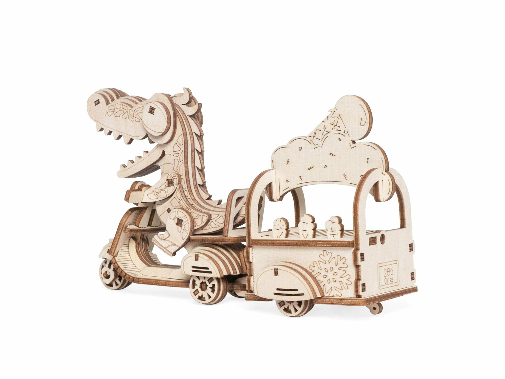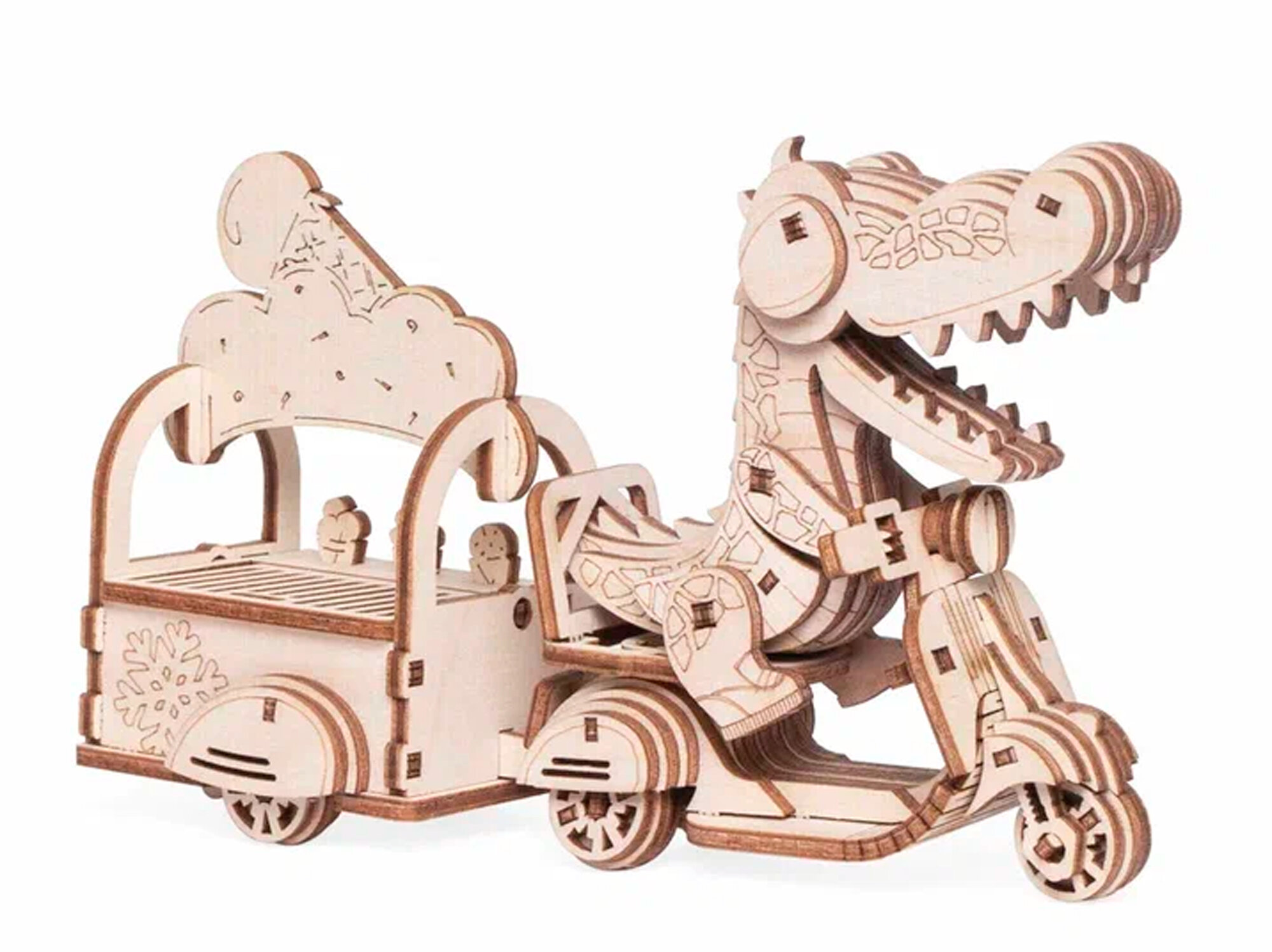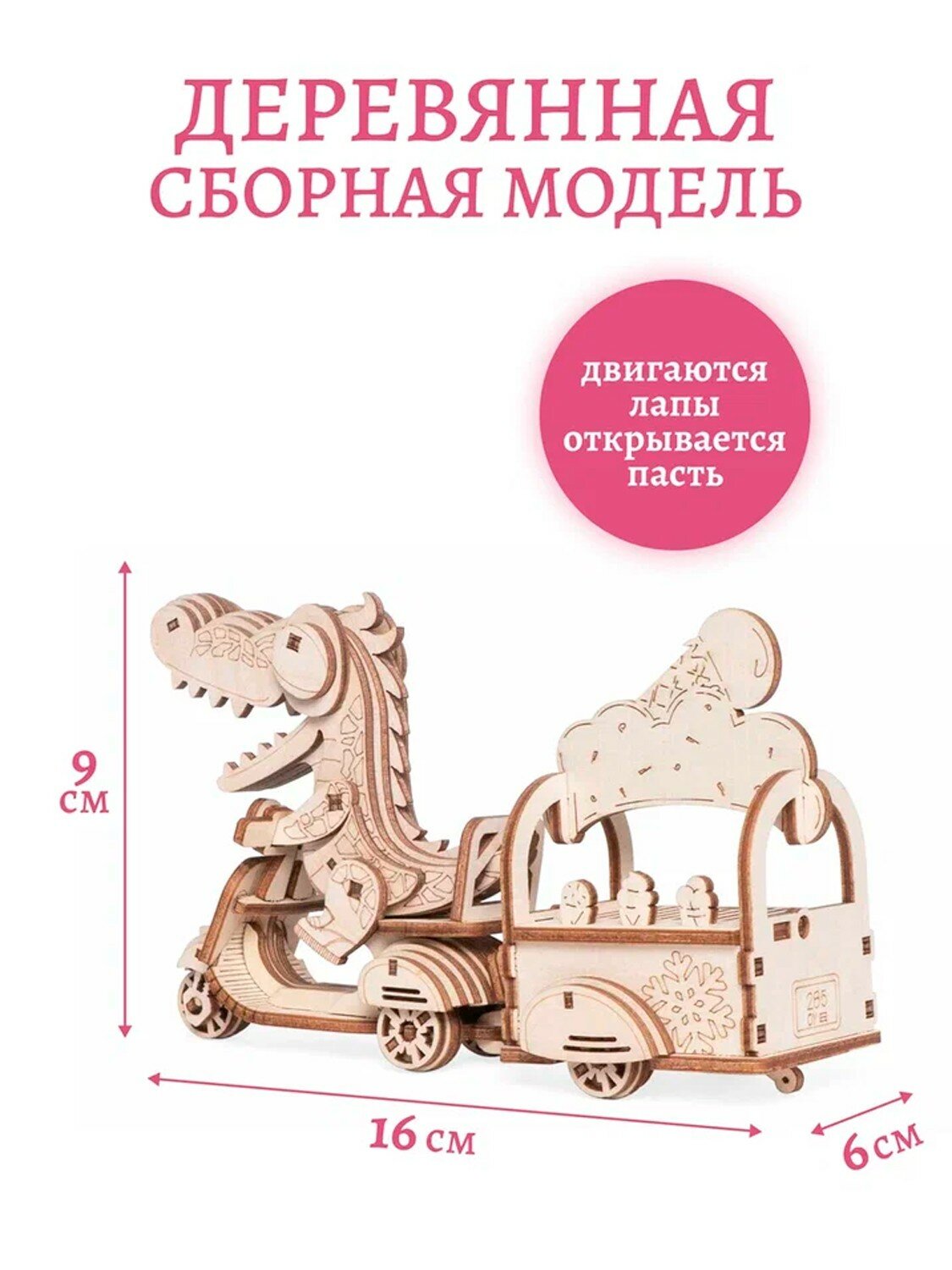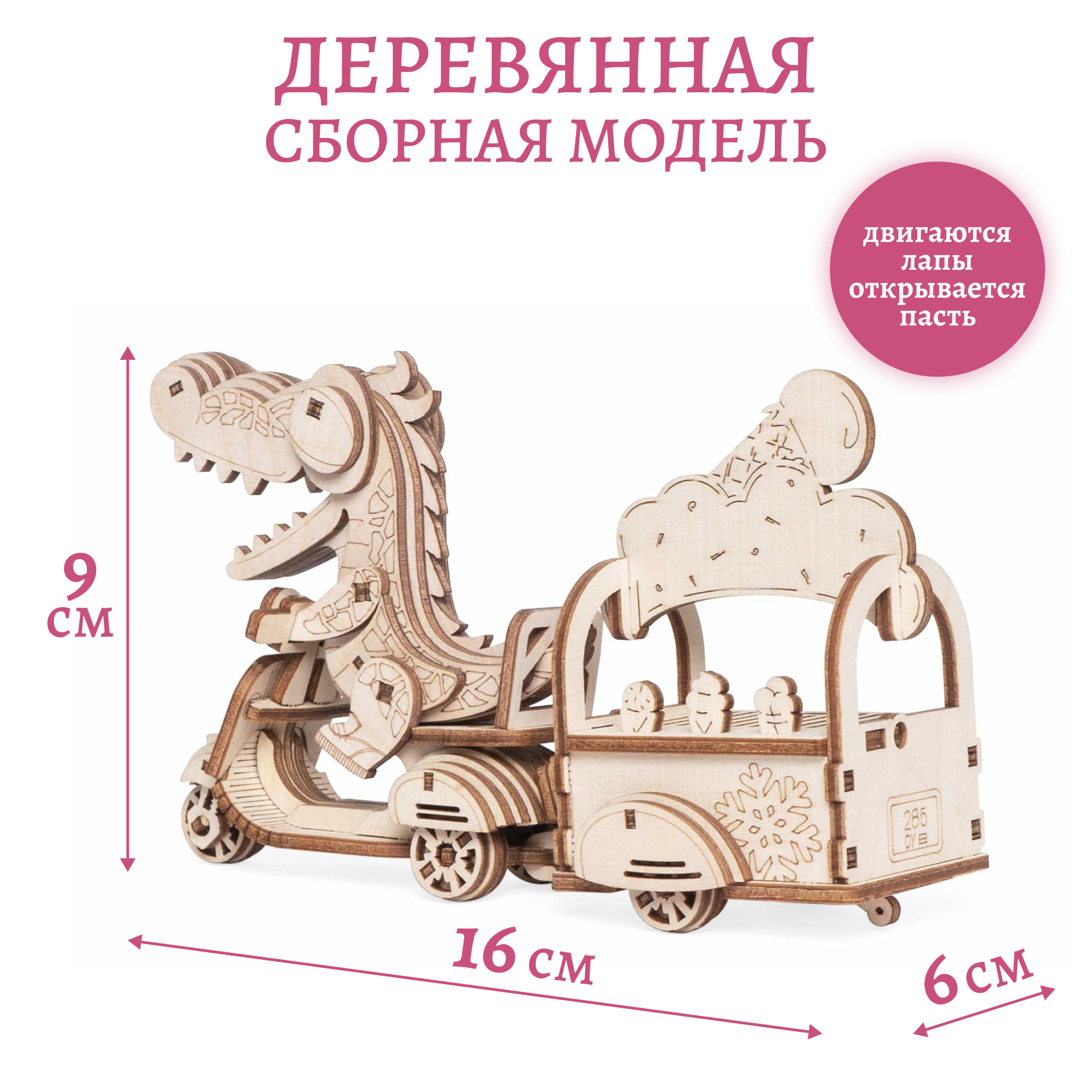Дети могут складывать фигурки в тележку и зубастый милаха отвезет куда скажете. Сборная модель из дерева впишется под любой интерьер, после того, как дети наиграются.