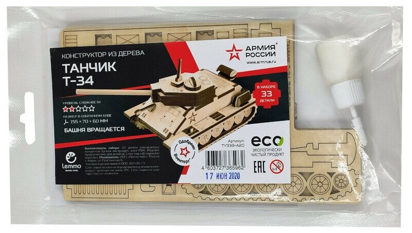 Сервис сравнения цен СкидкаГИД предлагает сравнить цены на товар «Конструктор деревянный Танчик Т-34 Армия России»