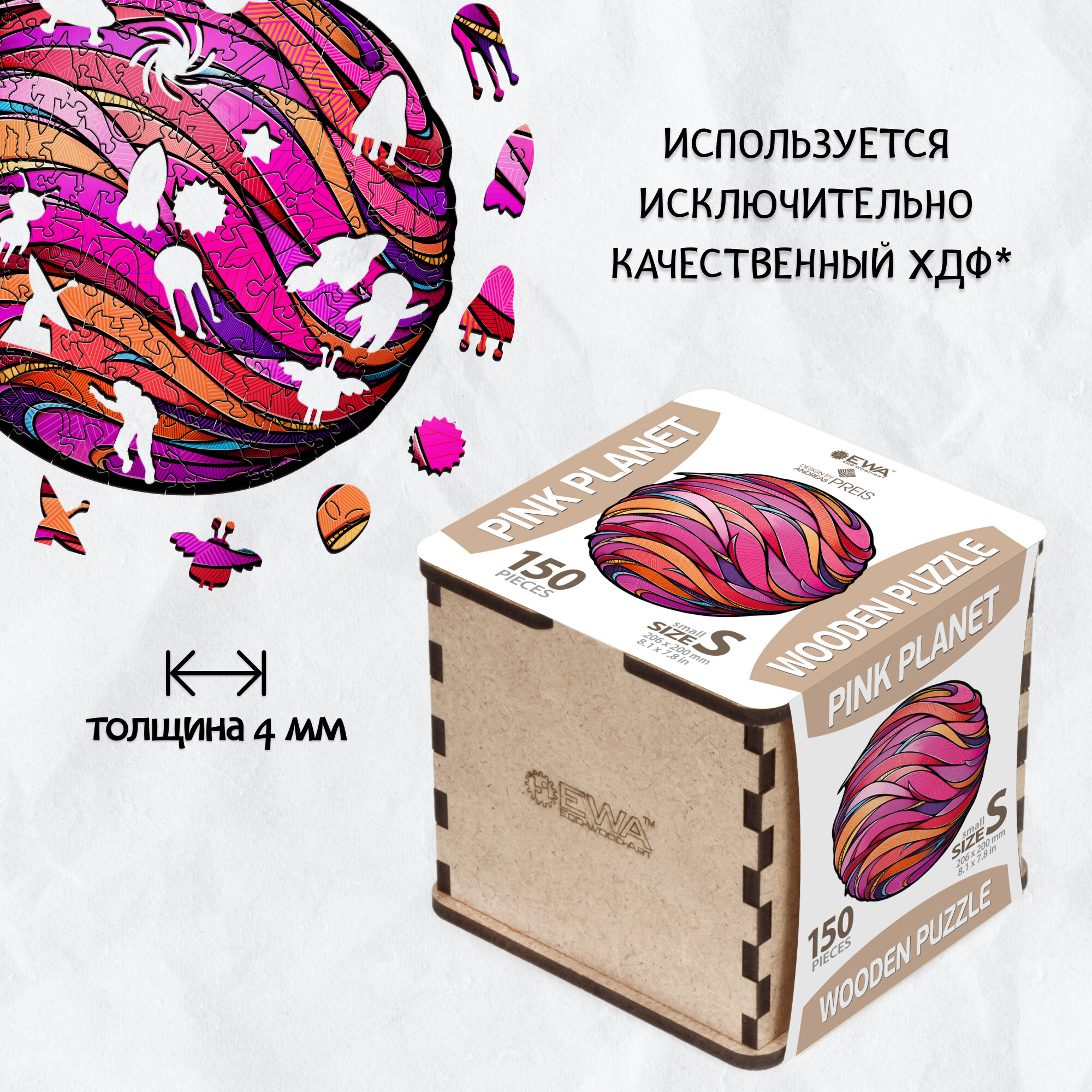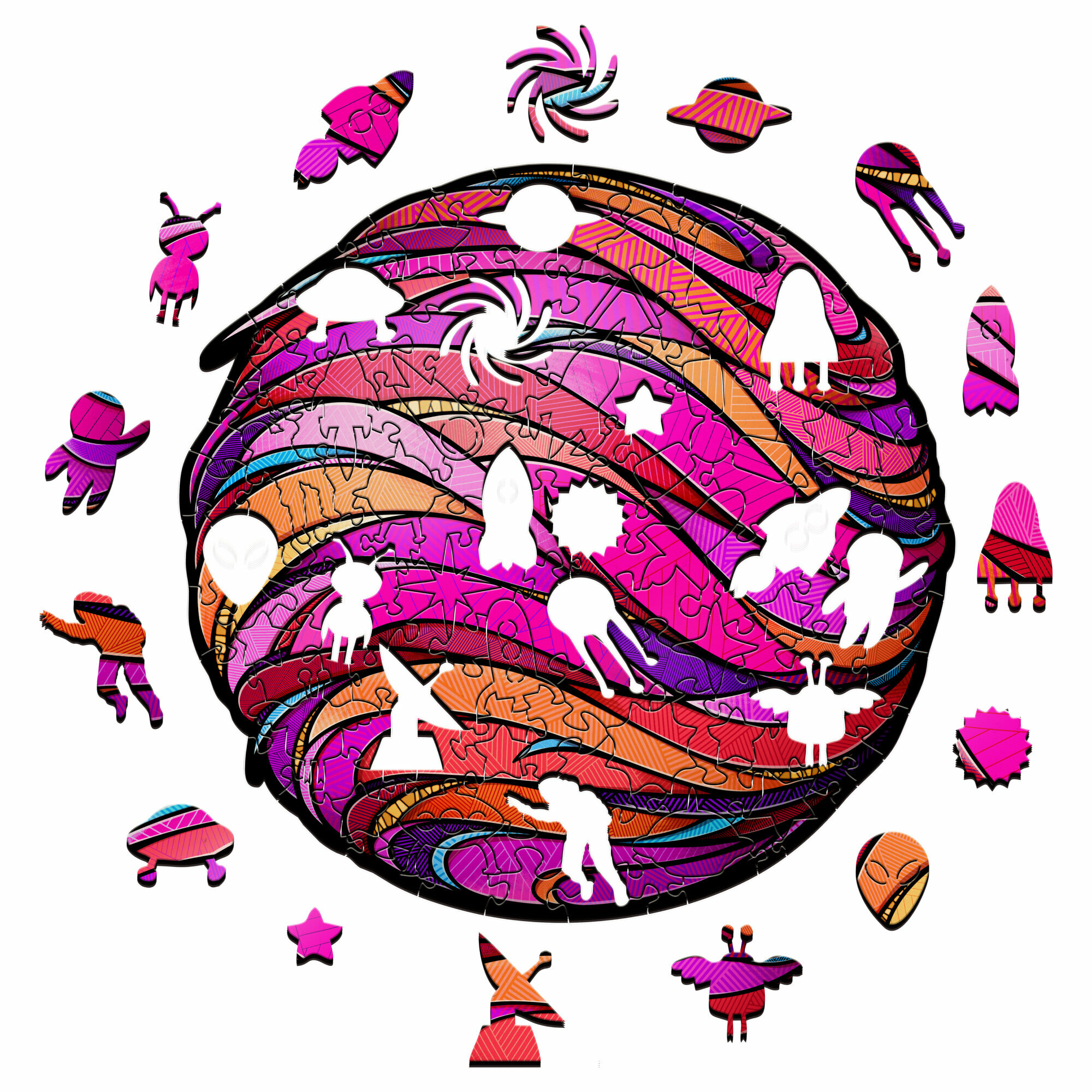 Деревянный фигурный пазл Розовая планета S Eco Wood Art