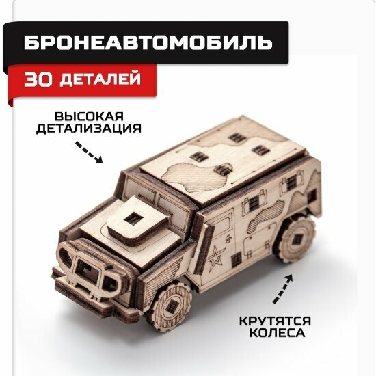 Сервис сравнения цен СкидкаГИД предлагает сравнить цены на товар «Деревянный конструктор сборная модель Бронеавтомобиль Армия России»